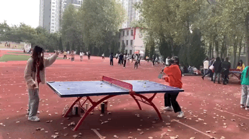 真不错呀!你俩都能把乒乓球给打成羽毛球了!