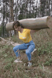 22、这么大的一颗圆木也举得起来啊,妹子这健身的方式有点猛!小生自愧不如也!