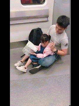地铁上为女儿梳头发的父亲,爱无时无刻都在