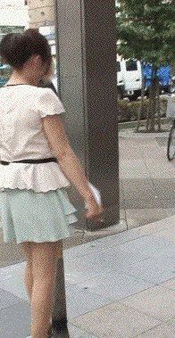 妹子你又调皮了,这警示杆是来给你这么玩的吗