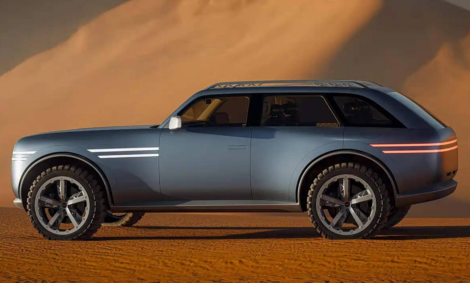 同时,该车还配备24英寸防脱圈轮圈。捷尼赛思X Gran Equator概念车几何风格的辅助灯与对开式尾门,同样呼应了捷尼赛思标志性的双线头灯设计。