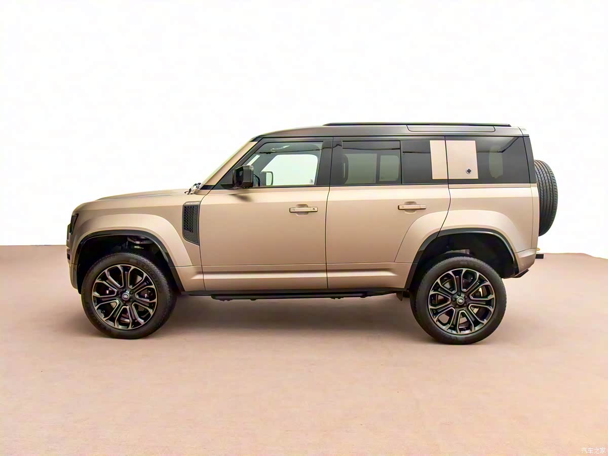 来到侧面,新车通过加宽轮拱不仅增强视觉张力,还可兼容专属20英寸及22英寸多款式合金轮圈,其中22英寸轮圈将匹配公路轮胎,而20英寸轮圈则会匹配全地形轮胎,其内部还将会配备Brembo高性能刹车卡钳。
