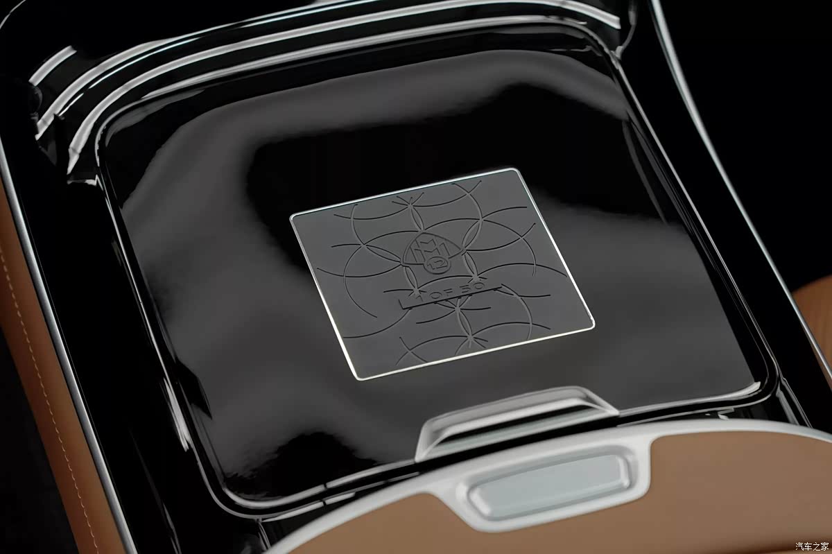 金色元素也延伸至座舱内部,车辆采用了定制棕色Nappa真皮,并搭配高光棕色胡桃木纹木饰板。同时,车辆棕色车顶内衬、特殊刺绣以及中控台上的1 of 50徽章。据官方表示,制作这个复杂的镶嵌饰件需要七个工作日的细致手工打造。此外,买家还将获赠特制的镀银香槟杯和一个手工制作的钥匙盒,与之搭配的还有一款带有与内饰相匹配的棕色包边的高级后备厢垫。