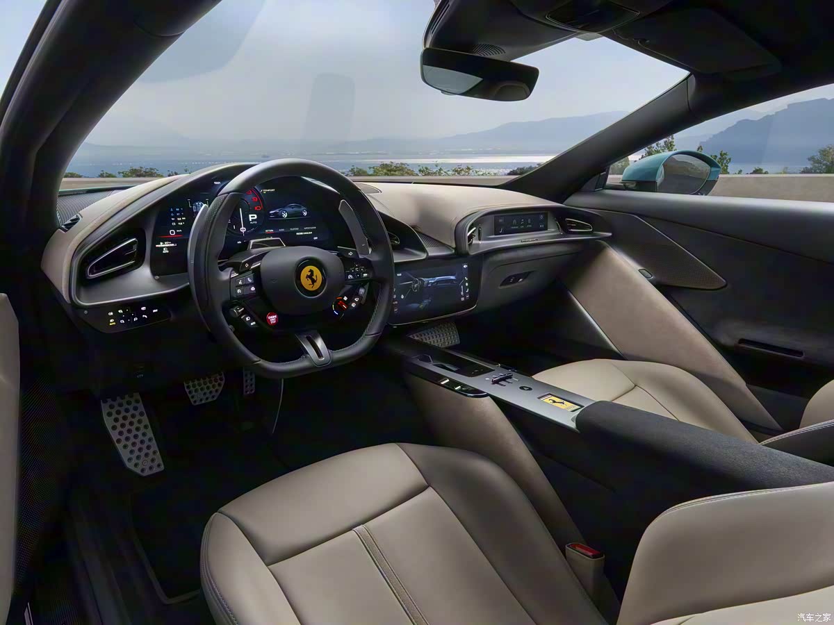 车载信息娱乐系统标配CarPlay,同时还支持智能手机无线充电功能。人机交互界面系统围绕三块主要显示屏进行设计。15.6英寸的数字仪表盘可实时呈现驾驶和车辆动态信息。仪表盘中央设有10.25英寸电容触摸屏,支持驾驶者与乘客便捷使用多项重要功能:多媒体、广播、电话、屏幕镜像、空调系统、座椅调节及车辆设置。此外,8.8英寸乘客显示屏则可实时显示G值和发动机转速等性能参数,为乘客带来同样沉浸式的驾乘体验。新车还可选装柏林之声音响系统。新车还搭载MyFerrari Connect系统,车主可通过专属应用远程监控座驾状态。