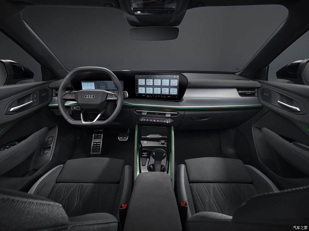 内饰配备11.9英寸的数字仪表盘和一个12.8英寸的信息娱乐系统,内置MMI触屏。新车使用全新一体式转向柱控制杆,通过拨动、按动和旋钮方式进行功能控制。其中,左侧为灯光和雨刮控制,右侧为换挡控制。