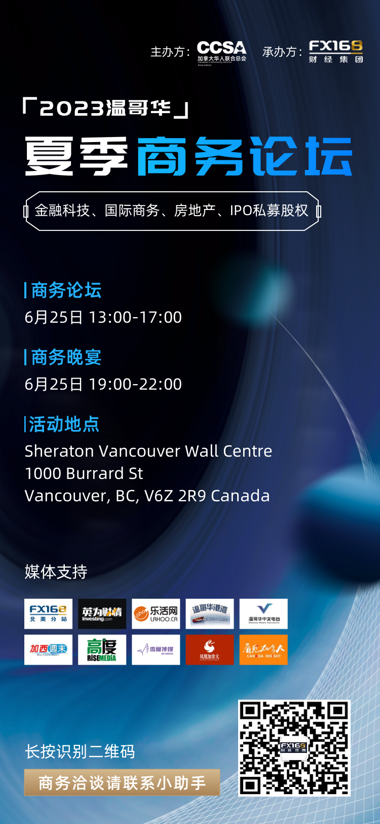 由加拿大华人联合总会主办,FX168财经集团承办的温哥华夏季商务论坛即将在6月25日于温哥华喜来登酒店盛大举行。