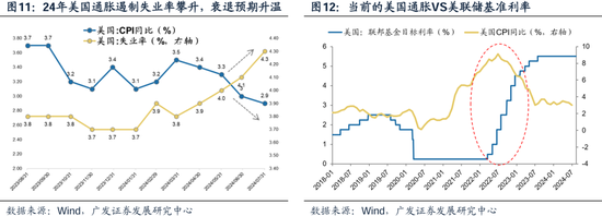 这与2020-2024年美国情形接近:40年未有之通胀—凛冽加息—通胀缓和—衰退预期升温—即将开启降息。 在美联储持续维持高利率背景下,2024年美国通胀有序降温,重回“2字头”;此外,近几月美国就业市场明显降温,非农数据多次低于预期且前期数据不断下修,而失业率数据上行至4.1%,更是触发了“萨姆法则”。8月23日杰克逊霍尔会议鲍威尔提及美国就业市场不可否认地在降温,并且不希望看到其进一步走弱,因此货币政策到了该转向的时候,市场开始交易“衰退预期”与“降息预期”。