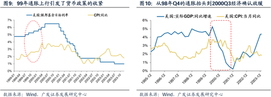 (二)根基的松动:这一预期的拐点出现在98年-00年,韧性增长与强势美元的根基松动 科网时期美国经济与美元走势预期的拐点出现在1998年-2000年。 1998-2000美国经历了一轮宏观预期的切换:1998年Q3通胀抬升—1999年6月美联储加息—2000年Q1通胀遏制—2000年Q3衰退压力升温—2001年1月重新降息。