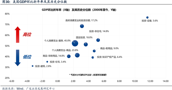 (六)基于现有信息,也难以做出美国有大幅“衰退风险”的判断 美国Q2经济主要支撑项是消费(商品在改善、服务有韧性)、制造业建造支出、设备投资。 美国这轮经济周期中,各分项结构对总量的驱动是错位的,并非同起同落。近两年,美国经济的核心支撑项的先后经历了:政府支出(22年下半年以来)->建筑投资(22年底以来)->商品消费(23年初以来)-->住宅投资(23年下半年以来)->服务消费、设备投资(23年底以来)。 那么,往前看经济放缓的过程中,出现大起大落(显著衰退)的风险可能也就相对较小。在经济放缓的过程中,由于支撑项之间的交替作用,整体经济表现较为稳定,降低了出现显著衰退的风险。
