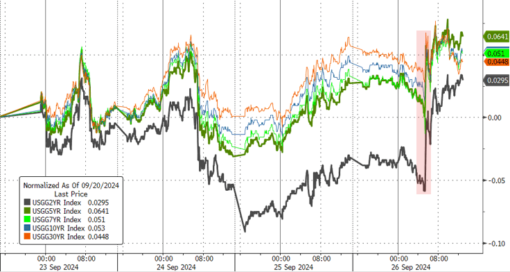 | 全球央行轮番降息、中国“政策大礼包”点燃全球乐观情绪,叠加美国经济数据依旧韧性,令投资者风险偏好上升,推动欧美股市走高,标普500大盘和泛欧Stoxx 600指数均创历史新高。板块方面,美光科技超预期业绩摆明AI需求潜力,助力欧美芯片股、科技股涨幅居前。受中国政策刺激政策的如中概股暴涨超10%、欧美奢侈品股、矿业股也随之大涨,防御性板块表现落后。因涉嫌会计违规,美国司法部调查超微电脑,盘中一度跌近18.6%。离岸人民币大涨600点,升穿6.98元创16个月最高。 美国经济数据再添经济软着陆迹象,打压大幅降息预期,美债收益率全线上涨。美国二季度实际GDP年化季环比终值3%超预期,且意外没有下修。核心PCE物价指数2.8%低于初值,美国上周首申数据超预期降至21.8万人好于预期,创五个月新低,美国8月耐用品订单环比零增长但好于预期的降幅,企业长期投资意愿存在,不过大选和需求不确定性导致扩张计划谨慎,可能影响未来几个月工厂生产。 投资者关注美联储官员讲话寻找降息线索,美联储理事库克完全支持FOMC在9月份降息50个基点,美联储主席鲍威尔在演讲稿中没有谈论货币政策。“美联储三把手”、纽约联储主席威廉姆斯官宣成立新机构,监控金融市场中利率基准或参考利率的使用情况。美国财政部长耶伦表示,预计住房成本将下降,将推动实现2%的通胀目标。 国际方面,瑞士央行将政策利率下调25个基点,高盛预计12月将再次降息。高盛还预计欧洲央行将加快降息步伐。随着世界其他地区进入“宽松”模式,美国市场降息预期降温,目前已将2024年的降息预期降至3次以下,11月会议上降息50个基点概率从57.4%降至51.1%。 大宗商品方面,金银铜飙涨,投资者押注中国政策刺激工业需求,黄金再创新高,白银价格升至近12年来的最高水平。因报道称沙特为争夺市场份额考虑12月开始增产,此举将令油价长期走低,加之利比亚供应担忧缓解,美油盘中一度跌近4%至67美元下方。 ![]() 美国经济数据仍具韧性提振软着陆预期,美股小幅齐涨。受益于中国刺激政策的股票全线飙涨,包括中概股指暴涨近11%,高途/好未来均涨超23%,中国是奢侈品消费主力军,欧洲奢侈品概念股飙涨,爱马仕和LVMH集团均涨超10%。原材料和科技板块涨幅居前,原材料行业受到中国提振,而科技行业受美光科技提振,因超预期业绩凸显强劲的AI环境和传统服务器的复苏。因油价暴跌,能源板块明显落后。全球央行纷纷降息,风险偏好提振背景下,防御性股票、房地产、公用事业和必需消费品落后: 美股三大指数齐涨:标普500指数收涨23.11点,涨幅0.40%,报5745.37点,再创收盘历史新高。与经济周期密切相关的道指收涨260.36点,涨幅0.62%,报42175.11点。科技股居多的纳指收涨108.09点,涨幅0.60%,报18190.29点。纳指100收涨0.72%,衡量纳指100科技业成份股表现的纳斯达克科技市值加权指数(NDXTMC)收涨1.13%。对经济周期更敏感的罗素2000指数收涨0.57%。恐慌指数VIX收跌0.26%,报15.37。 ![]() 纳指盘初领涨,但最终涨幅收窄,与其他主要股指涨幅相近 美股行业ETF收盘多数上涨。全球航空业ETF涨近5%,半导体ETF涨近3%,全球科技股涨逾1.5%,科技行业ETF、区域银行ETF、生物科技指数ETF各涨至少1%。而能源业ETF跌近2%,公用事业ETF跌超0.5%。 ![]() 标普500指数的11个板块多数上涨。原材料板块收涨1.97%领跑,信息技术/科技板块涨0.89%紧随其后,电信板块涨超0.3%涨幅倒数第二,房地产板块则收跌1.05%跌幅第二大,能源板块跌2%。 华尔街大行观点:摩根士丹利预计沪深300指数短期内可能再涨10%,这一预测基于对中国再贷款项目利率和沪深300指数股息率的分析。策略师认为,真正令市场感到惊喜的是稳定市场的措施,这可谓是史无前例的。高盛的Scott Rubner认为中国股市可能迎来复苏,建议投资者参与。他指出,在最近的涨势之前,对冲基金对中国股票的投资比例不到7%,约为五年来的最低水平,但最近开始大量买入,周二创下了自2021年3月以来的最大单日买入量,也是过去10年来第二大单日净买入量。 “科技七姐妹”涨跌不一。特斯拉涨超1.8%后回落收跌1.09%,亚马逊涨超1%回落收跌0.71%,微软收跌0.19%,“元宇宙”Meta收跌0.08%,英伟达CEO黄仁勋对Meta首发的Orion AR眼镜原型赞不绝口,称100克的重量“具有重要意义”,而英伟达盘初涨近3.4%后收涨0.43%,盘中一度转跌1%。苹果收涨0.51%,谷歌A盘初涨超1.6%后收涨0.77%。 芯片股多数上涨。费城半导体指数收涨3.47%。行业ETF SOXX收涨3.57%;英伟达两倍做多ETF收涨0.7%。美光科技收涨14.73%,盘中一度涨近20%,创2011年以来最大单日涨幅,公司上季营收猛增超90%,本季指引碾压预期。台积电美股收涨2.46%。应用材料收涨6.23%,阿斯麦ADR收涨4.19%,科磊收涨4.21%,Arm控股收涨1.86%,英特尔收涨1.61%,博通收涨1.46%,AMD收涨3.38%,高通收涨2.61%,安森美半导体收涨5.27%,迈威尔科技收涨3.19%。 AI概念股涨多跌少。超微电脑收跌12.17%,盘中一度跌近18.6%,再次触发盘中临时停牌,报道称美国司法部调查超微电脑,因涉嫌会计违规。CrowdStrike收跌1.74%,Palantir收跌0.05%,Snowflake收跌0.12%,而英伟达持股的AI语音公司SoundHound AI收涨0.41%,Serve Robotics收涨0.65%,甲骨文收涨1.09%,BigBear.ai收涨1.29%,BullFrog AI收涨1.72%,戴尔科技收涨5.26%,C3.ai收涨0.87%。 中概股指暴涨。纳斯达克金龙中国指数收涨10.85%,创2022年以来最大单日涨幅,报6958.10点。ETF中,中国科技指数ETF(CQQQ)收涨9.68%。中概互联网指数ETF