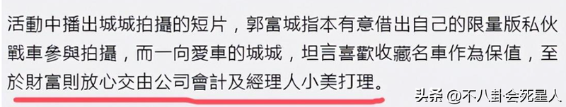 近日,“天王嫂”方媛在参加一个楼盘活动时自曝自己在香港还没有房产,在内地就有房产,在内地的房产则交给自己的爸爸打理。![]() 媒体趁机调侃方媛,让郭富城给她在香港买一套房产吧。方媛则高智商回应,如果她要在香港买房子,老公郭富城一定会支持自己的。 ![]() 而且方媛还趁机提出了对房子的要求,希望是海景房,而且周围一定要有绿化和充足的配套设施,有空的时候就可以和家人去出海晒太阳。可以看出,方媛还是有在香港置业的想法的,不知道老公郭富城看到之后会不会支持。 ![]() 虽然说香港房产是出了名的贵,但对于郭富城来说,给老婆在香港买一套房产绝对不成问题。 ![]() 郭富城作为“四大天王”之一,虽然近年来十分低调,但却是实实在在的“隐形富豪”。早在2013年的时候,郭富城就被曝身家高达17亿元,在国内歌手中身家排在前面。 ![]() 郭富城主要收入来自于开演唱会,曾自曝开一场演唱会能赚6000万,连2000万的片酬对他来说都没有什么吸引力。而他出道多年,开的演唱会早已超过200场。 ![]() 郭富城和很多喜欢买房的明星不一样,他非常喜爱豪车,对买房产似乎并不热衷。他和家人住的豪宅是多年前购买的,当年他花了2000多万买下顶层两套房打通,如今被传价值半亿。 ![]() 而方媛生下孩子之后,方媛的父母也搬来香港居住帮忙照顾外孙女,但郭富城并没有买下另外一套房子给岳父岳母住,而是每个月花超10万租了楼下的一套房给他们住。 ![]() 其实有媒体曾经曝过郭富城在上海也有一套豪宅,方媛曾经带着朋友在豪宅里聚会过。 ![]() 但方媛带着郭富城回内地看望岳父岳母的时候,却被爆住在方媛在内地买的小公寓里,而并非豪宅。 ![]() 相反,郭富城对自己倒是十分“大方”,因为喜爱豪车,郭富城名下有近20辆豪车,其中很多都是千万级豪车。 ![]() 其中一辆价值2000万的豪车,还是不能开回家的那种。 ![]() 除了价值数亿元的豪车,方媛还曾经晒过郭富城价值5000万的游艇。 ![]() 但这一切和方媛的关系似乎并不大,2017年,方媛嫁给了大22岁的郭富城,同年生下一个女儿,2019年又生了一个女儿,结婚7年生了2个女儿,但事实上,方媛的“天王嫂”有点名不副实。 ![]() 为什么说“名不副实”,因为结婚7年了,郭富城的全部身家都由另一个女儿全权打理,那就是郭富城的经纪人“小美”,这是郭富城亲口承认的。 ![]() ![]() 也难怪为什么,方媛嫁给郭富城7年了在香港竟然还没有房产,毕竟当年郭富城和方媛结婚的时候,婚礼也被调侃太“寒酸”了,只花了百万港币,方媛结婚当天最贵的戒指也只有6位数,鞋子4千元,而且还没有礼金。 ![]() 但这并不影响方媛和郭富城稳定和恩爱的婚姻,这大概就是为什么郭富城说喜欢方媛单纯不贪钱吧。 ![]() 毕竟在日常生活上,郭富城对方媛还是很“大方”的,不仅每个月给方媛20万的生活费,还月花超10万租房给岳父岳母住。 ![]() ![]() 而方媛日常的穿搭也看得出来很富贵,几十万的手镯,数万元的衣服,上万元的名牌包都不缺。 ![]() 身家17亿的郭富城最后选择了网红出身的方媛,也不是没有原因的。 |