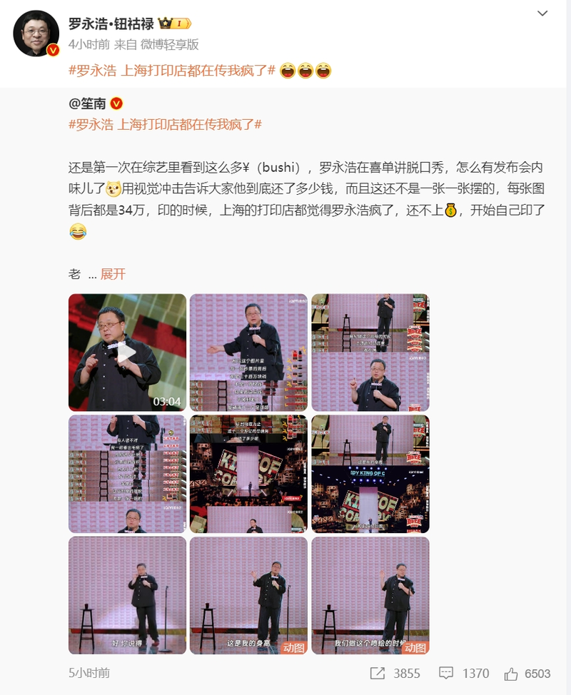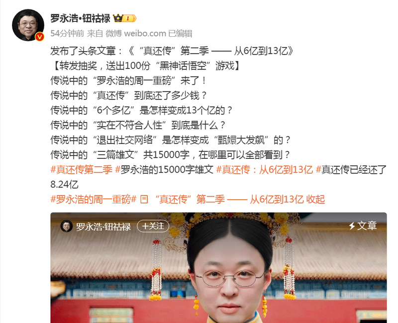 据证券时报,在9月27日播出的喜剧之王·单口季节目中,罗永浩作为嘉宾上台演绎了一段脱口秀。他在分享中,告知观众已还完8.24亿元债务,还把8.24亿元人民币图片拼接在一起,直观展示给大家。“如果把这些钱(8.24亿元)平摊到地上,能铺满十三个足球场。印的时候,上海的打印店都觉得罗永浩疯了,还不上钱,开始自己印了”。罗永浩自嘲道。 ![]() 罗永浩27日在微博发文表示:“上海打印店都在传我疯了。” ![]() 8月26日,罗永浩在微博发布约15000字的“重磅雄文”。 文中称,到目前为止,其实“真还传”一共还了8.24亿,远远超出之前对外公布过的“欠债6个多亿”。主要的原因是还债过程中,因为各种官司纠纷带来的额外赔偿,以及滞纳导致的各种罚款等等,使得债务总数多了近1个亿。另外,2022年的年底出现的一些情况,也产生了新的债务。 要点如下:一、到目前为止,其实“真还传”一共还了8.24亿元 目前已经还债的8.24亿元包括: 1.2020年4月开始做直播电商公司,税后以真金白银的现金还债的5.48亿元; 2.2018年把手机团队和知识产权转让给字节跳动获得的1.8亿元(之前在社交媒体上公布过); 3.2018年锤子科技资金断链、产线停工后,我签了个人无限担保使工厂复工,把剩余物料做成整机抵债的6600万元; 4.锤子科技的债务善后团队从2018年至2019年年底,以各种方式变卖锤子科技的剩余资产用于还债的近3000万元。 二、关于新增的6亿元债务 锤子科技当年融资时,获得过国有资本的3亿元投资和3亿元借款,共计6亿元。2018年开始“真还传”的时候,这部分债务要到4年后才会发生。 罗永浩决定:在国有资本的债务实际发生日期到来之前,像“真还传”第一季的时候一样,再一次主动放弃债务重组谈判(一般说来,我国企业破产时债务重组的本金清偿率大概是10%~30%),直接对国有资本债权方承诺:除了借款的3亿,把投资亏掉的3亿元,也全都按债务来处理,我们会以现金的方式100%偿还6亿元本金。实际上这部分债务到现在,也已经悄无声息地偿还了一年多了,会在未来几年全部还完。 三、放弃已经执行了一年多的“闷声大还债”方案,恢复社交媒体运营和更新 罗永浩还表示,“接下来我和我的团队会索性火力全开,兴风作浪,用一切合法合规合乎商业伦理的方式“大肆炒作”,开足马力以各种方式做大做强现金收入,尽快还掉剩余的5个多亿债务。” 罗永浩马上会做的事情包括但不限于: 1.全面恢复社交媒体账号的更新和运营,这一次会在九个网络平台上同时运营; 2.部分恢复综艺节目的录制; 3.全面恢复接商业广告和代言; 4.部分恢复婚丧嫁娶主持业务; 5.全面恢复请文化名流和影视明星来直播间交流和带货; 6.全面恢复同名的商业喜剧大片和严肃纪录片“真还传”的创作。 9月9日,罗永浩在微博发布长文,就“真还传”的七大未解之谜做出回应与澄清,回应郑刚此前质疑言论。 首先就锤子科技D轮近10亿融资一年花光一事做出澄清,罗永浩称,锤子科技最后一轮的D轮,没有10个亿融资,最后到账只有6个亿,其中包括3个亿的投资款和3个亿的借款。 ![]() 图片来源:视觉中国VCG111324808154 罗永浩表示,之前媒体报道过10个亿,是因为当年还拿到了另一家机构的投资意向协议书,承诺给我们投4个亿(这种承诺没有实际约束力),但最后这4个亿投资并没有实际发生,所以总共只有6个亿。 此外,关于锤子科技对罗永浩2476万元的欠款,罗永浩则称,这几年已经通过去做直播电商为锤子科技还了好几个亿,这两千多万当然也没打算拿回去,稍后自己会再给公司补一个书面的自愿放弃声明, 而对于“罗永浩,8.24亿你是真金白银还了吗?”“罗永浩,5.48亿还款有没有打骨折?”“罗永浩,你能公示还债数据清单和银行流水明细,以及完税证明吗?”这三个问题,罗永浩表示其实基本上是一件事。 图片来源:天眼查App![]() 图片来源:天眼查App 天眼查风险信息显示,罗永浩及其关联公司曾多次被强制执行、限制高消费,但上述信息都已被法院撤下。目前,罗永浩名下并无执行信息及限制消费令。不过,其名下仍有一部分股权冻结信息尚未解除。 |