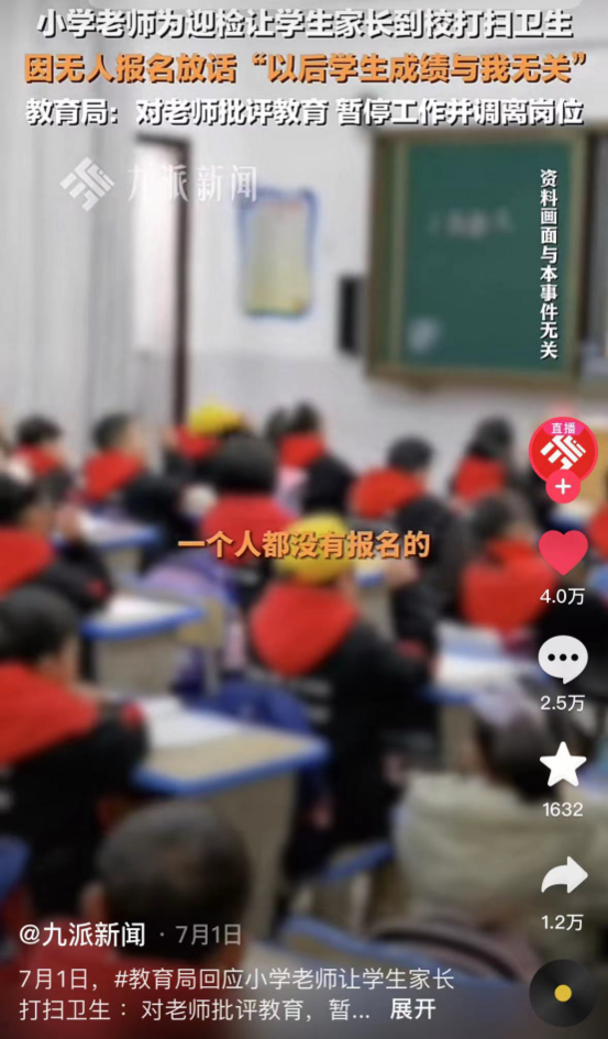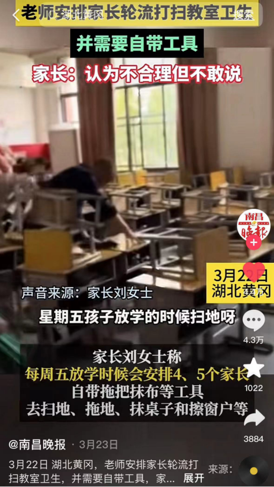 ![]() 是时候让中国家长们,好好喘息一下了。 01 现在的家长, 过得真是不容易。既要当爹妈,又要当孙子。 02 前不久,浙江一小学门口发生了一件无比心酸的事。一位妈妈,跪在学校门口,声嘶力竭疑似哭喊着:求求校长,取消钉钉打卡! ![]() 她的头上还戴着电动头盔,声音吼到几乎嘶哑。正好赶上孩子上学的高峰期,四周挤满了围观的家长,却没有一个人上前制止她。或许她的哭诉,也说出了他们的心声。视频一发到网上,就引发了热议。不少家长在评论区里大吐苦水,表示理解:“最烦动不动就钉钉打卡了,说是家庭作业,到最后不都变成了家长作业?” ![]() “给孩子布置的任务,最后困住的都是大人。” ![]() “一点小事就要家长上传打卡,下了班还要一刻不停地围着孩子转,是不是太过分了?” ![]() 事件发酵后,当地的有关部门很快进行了调查。调查结果显示,妈妈是因为孩子的一些琐事而情绪崩溃。下一步将更加规范钉钉打卡的使用,更好服务家校沟通。 ![]() 03 一个成年人, 精神要紧绷到什么样的程度, 才能不顾尊严,不顾体面地 在自己孩子的学校门口, 跪地哭诉? 虽然我们不知道, 压垮她的最后一根稻草 究竟是什么, 但网友们的态度, 却很值得我们深究。 为什么大家如此义愤填膺? 因为这届家长, 真的已经苦打卡式教育久矣。 就像网友说的, 明明是给孩子的作业, 但是回家家长又是要批改, 又是要上传。 一通操作下来, 久而久之 对家长来说 何尝不是一种负担? 孩子每天的作业看似不起眼。 可家长在外面上了一天班, 回来还要应对 自己可能并不擅长的功课。 既令人疲惫又不得不做, 分分钟就能被压垮。 虽说家校配合很重要, 但家校配合 也应该有明确的分工啊。 学校负责教书育人, 教给孩子文化与知识, 培养孩子的道德。 家长负责给孩子 营造一个好的学习氛围, 引导孩子独立完成学习任务。 而不是把批改作业、 为学校活动提供素材 这样的事情, 都要家长去做。 如果家长 都能帮助孩子完成了, 那还要老师干什么? 要是家长什么都能教了, 替孩子做了, 那还要把孩子送学校干什么? 小时候写作业的是一批人, 没想到长大了 交作业的还是这批人。 这届家长,难啊! 04 越来越觉得, 现在的教育方式已经变了味。 网络不发达的年代, 家长哪需要操这么多心? 我们小时候, 父母最多监督我们 写完作业就可以了。 可现在呢? 作业要批改, 家长要打卡, 家长群还得时刻盯着, 生怕错过什么重要通知。 送孩子上学, 戴上紧箍咒的 却是家长自己。 甚至这种打卡式的教育, 从幼儿园时就已经开始卷起。 就说一周几次的手工课吧。 网上有个段子说, 不会做手工的家长 不配把孩子送幼儿园。 笑过之后是深深的扎心。 幼儿园美其名曰 培养孩子的动手能力, 但有多少都成为了家长的任务? 小到折纸,编织, 大到废材利用。 ![]() 一碰到什么儿童节、教师节、国庆节就更不用说了。手工作业做个坦克火箭,都已经是小儿科。有的父母直接给孩子造了一个天安门。 ![]() 这背后要耗费的时间精力,简直不敢想象。我常常在想,3、4岁的孩子有多大的动手能力?竟然把手工作业布置到这个份上,最后还不是老父亲老母亲“英勇就义”?上了小学,就更变本加厉了。作业打卡、背书打卡、阅读打卡……家长累死累活在外面上了一天的班,回家一看群消息弯了一天的腰终于累塌了。各种群消息,群任务,让人应付不迭。 ![]() 首当其冲的就是各种奇葩作业。真是只有你想不到,没有家长做不到。有的学校,数学作业要孩子数一万粒米。 ![]() 孩子和家长数了一个通宵,眼都快熬瞎了,最后还是没有完成。我很想知道,这么逆天的作业,老师布置之前自己有没有做过?有的学校,要孩子画30天的月亮,说什么培养孩子的观察力。家长陪孩子熬下来,一个月竟然累瘦了8斤,不知道该哭还是该笑。 ![]() 有多少作业, 是以娃的名义在折磨家长? 有人说,利用好钉钉、微信群, 每天打卡, 是为了家校沟通, 共享学习资料。 但是实际上, 最后不都是 给家长安排任务的工具吗? 05 完成作业还算说得过去, 有的学校恨不得 让家长做自己的免费苦力。 江西贵溪, 一学校要求家长 中午和晚自习到校内值班。 据学校说, 是因为校内实行午间静校的规则, 需要有人来管理午间秩序。 学校安排给老师, 老师推脱给家长, 家长成了倒霉蛋。 难道要家长每天上班的时候 请两个小时假来给学校值班? 这是家长还是保安? 还有丹东某老师, 为了应付上面领导的检查, 要求家长到学校打扫卫生。 ![]() 眼看群里没有家长报名她恼羞成怒。张口就是威胁:“你们不来,我只负责讲课,成绩怎么样与我无关。”无独有偶,湖北黄冈某学校,老师同样安排家长轮流打扫卫生。还需要家长自带抹布、拖把等卫生工具。 ![]() 家长们都觉得不合理, 但不敢说, 生怕孩子被“特殊”对待。 只能安慰自己, 一个学期也就这么一两次, 忍忍就过去了。 不知道从什么时候开始, 孩子去上学, 家长却像把自己 卖给了学校一样。 操着父母的心, 干着保安、保洁的活。 脸上还得赔着笑脸, 真是有苦难言。 现在的教育, 最畸形的地方就在于此。 家长的责任要尽, 学校的活家长也要干。 一个孩子上学, 全家跟着受罪。 06 可面对这样的“绑架”, 家长们只能打碎了牙 往肚子里咽。 毕竟孩子还在学校里, 生怕自己哪里做的不好, 连累了孩子 在学校的日子也不好过