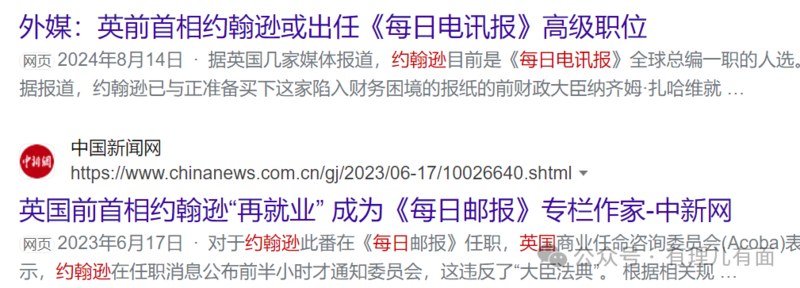 当地时间10月4日,英国前首相约翰逊通过《每日邮报》又曝光一个“猛料”:在英国参加2021年七国集团(G7)峰会期间,英方曾邀请拜登参观“英国海军的骄傲威尔士亲王”号航母,但拜登拒绝,之后拜登随从给英国方面的解释是“台阶太多”。![]() 打人不打脸,骂人不揭短。这不是在给拜登上眼药,开涮睡王年纪大身体不行吗?约翰逊不愧于被称为“英国特朗普”。 ![]() 约翰逊这是想干啥? 这段时间,约翰逊可谓四处开火,“解密”了不少吃瓜群众喜闻乐见的“猛料”。 当地时间10月3日,英国《每日电讯报》报道,约翰逊爆料“2017年内塔尼亚胡访问了他位于伦敦的办公室,期间借口去厕所;但不久后他就被安全团队告知,他们定期清理窃听器时在马桶里发现了一个监听装置。” ![]() 当地时间10月2日,美国有线电视新闻网(CNN)、美国广播公司(ABC)等媒体报道,约翰逊爆料,“我(在英国女王伊丽莎白二世离世)一年多前就知道她患有某种骨癌,她的医生担心她(的病情)随时会急剧恶化。她看起来脸色苍白,驼背的问题(比之前)更严重,手上和腕上有黑色瘀伤,这可能是打点滴或注射造成的。” 当地时间9月27日,约翰逊在《每日电讯报》亲自发文爆料“2021年3月,在欧洲疫情最严重时期,他曾考虑‘秘密突袭’荷兰。当时,欧盟和英国因为疫苗近乎撕破脸:欧盟计划扣押并分发阿斯利康公司储存在荷兰莱顿、即将发往英国的500万支疫苗,惹怒英国”。 是不是看上去都很劲爆? 世界头号大国总统秘闻; 间谍情报政府首脑暗战; 王室宫廷隐秘; 疫情下的秘密军事计划等等。 哪一项都充满了吸引人眼球的要素。你别说,因为约翰逊这段时间“猛料”不断,在美国大选、中东大战危局、俄乌冲突等诸多影响世界大事热点的背景下,约翰逊这个过气政客,硬生生通过上述话题杀出一条“血路”,频频登上世界各国各大媒体各大平台热搜榜。 ![]() 当然,不少是被骂上热搜。如约翰逊披露的英王室秘闻,被不少英国网友狂批他不尊重死者隐私;如“秘密突袭”荷兰,被欧洲网友狂骂“无耻”“肮脏”。 按照常识,虽然西方像约翰逊这种政客看上去不怎么在乎名声,但这帮家伙实际上相当信奉“江湖不是打打杀杀,是人情世故”,今年只有60岁的约翰逊,未必没有东山再起的机会。 但现在约翰逊得罪英王室、得罪美国拜登、得罪以色列内塔尼亚胡,还拼命奚落马克龙,几乎是把西方核心圈得罪了一个遍。 事出反常必有妖,约翰逊这是想做什么? 核心原因很简单:带货卖书! 2023年1月,约翰逊与哈珀-柯林斯出版公司达成协议,将撰写一本回忆录,讲述他在英国近代史上最具戏剧性的时期内,在伦敦唐宁街担任首相的经历。 ![]() 当时,哈珀-柯林斯出版公司没有说给了约翰逊多少“润笔费”,可之后和近期公开消息显示,这笔费用高达480万英镑(约合4400万人民币)。 这可不是一个小数目。哈珀-柯林斯出版公司可不是“慈善家”。这家公司的词条是:新闻集团的全资子公司,是全球最大的英文书籍出版商之一,总部位于纽约。 新闻集团?那可是世界舆论界的大鳄,由鼎鼎大名的默克多家族掌控。这很好解释了为啥过气政客约翰逊,为啥说个“八卦猛料”,就能迅速席卷全球舆论场的原因: 给自家产品打广告! 按照近期公布的计划,约翰逊的回忆录将于10月10日全球发行。 约翰逊为啥这么卖力配合表演呢? 按照近年美英文体娱乐圈资本的玩法,为了让“明星牛马”卖力,一般都习惯在签协议时搞“对赌协议”。疯狂作死“被逼宫下台”的约翰逊,债务状况不佳;突然有这么大一笔“润笔费”,不可能不签保证销量的“对赌协议”。 有两个细节可以说明约翰逊“卖书”的拼命程度: 一是在9月27日第一次爆猛料的时候,《每日电讯报》问“秘密突袭荷兰计划制定的细节”,约翰逊当场说“回忆录里有细节”。 ![]() 二是去年年中约翰逊“再就业”成为《每日电讯报》专栏作家,今年8月份他拼命往上爬,利用任职首相时结下的人脉关系,竞争《每日电讯报》全球主编。 有理哥查阅资料发现,《每日电讯报》公开词条显示:该报历史悠久,是英国四家全国性“高级”日报中销量最大的一家,政治属性是保守党的喉舌。 作为保守党前党魁的约翰逊,为了大卖自家回忆录,拼命在自家喉舌媒体中任职往上爬,你说这是什么性质呢? 我们看来是典型的公器私用! 当然,这在西方属于政商旋转门,是被各路公知们舔为“廉洁”的教科书。 约翰逊作为一个政客,除了卖书其还是有政治上的算计。 约翰逊这个看上去嘴上没把门的人,之所以能当上英国首相,关键原因就是他是推动英国脱钩的骨干;这也是他任上最被人惦记的“政绩”,其他方面近年整个保守党是丑闻不断,已经被英国民众抛弃。 可近期约翰逊最大的“政绩”,也快被写进耻辱柱。 ![]() 在约翰逊说出“秘密突袭荷兰”这个猛料的当天(9月27日),英国现任首相基尔·斯塔默正在布鲁塞尔与冯德莱恩会面。路透社称,这是英欧关于贸易、安全和人员流动等问题的“首次对话”,斯塔默将推动重启双方关系。 就在英首相前往欧洲当天,有数千名英国民众在伦敦举行反脱欧游行。 早在今年4月,英国经济界喉舌《经济学家》就曾发表了重磅文章《为什么大多数人后悔英国脱欧?》(Why most people regret Brexit?)并断言,大多数英国选民认为分裂是一个错误(A majority of British voters now believe the split was a mistake