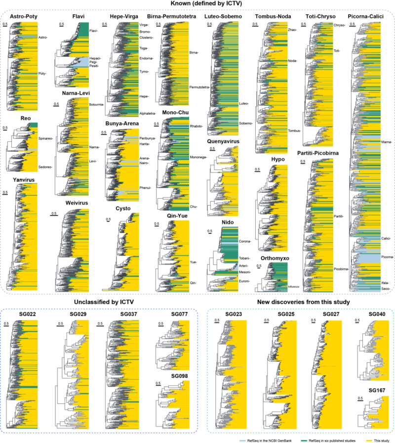 据中山大学微信公众号,10月9日,中山大学医学院施莽教授团队与阿里云李兆融团队在《细胞》杂志(Cell)发表论文报告了180个超群、超过16万种全球RNA病毒的发现,这是迄今为止规模最大的RNA病毒研究,大幅扩展了全球RNA病毒的多样性。该研究将人工智能技术应用于病毒鉴定,发现了传统方法未能发现的病毒“暗物质”,探索了病毒学研究的新路径。![]() ![]() 文章第一作者侯新(左三)和阿里云团队在中山大学医学院合影 传统病毒发现方法遇瓶颈 人工智能突破“已知”探“未知” 病毒是地球生态系统的重要组成部分,也与人类的健康密切相关。但是,目前已知的病毒种类仍十分有限,用更高效、更精准的方法发现和鉴定新病毒,一直是病毒学研究的基础工作。 最早,人们通过分离培养病毒,在显微镜下观察确认病毒的存在。随着生命组学的发展,科学家们能够利用测序技术,比较未知病毒和已知病毒核酸序列的相似性,识别和鉴定新病毒。这种方法十分依赖对病毒的既有认知。 然而,RNA病毒是一种高度分化、种类繁多且容易变异的病毒,尤其在面对缺乏同源性或同源性极低的“暗物质病毒”时,这种序列同源性比对的方法很容易失灵。 ![]() 使用人工智能对全球病毒圈深度挖掘并分类 人工智能技术的引入使突破“已知”寻找“未知”成为可能。研究中,团队采用的核心算法LucaProt是一种能够深度学习的Transformer模型,在大量学习病毒和非病毒基因组序列后,可以自主形成一套关于病毒的判断标准,从而在大量的RNA测序数据集中挖掘出病毒序列。在测试中,LucaProt表现出极高的准确性和特异性,假阳性率为0.014%,假阴性率为1.72%。在与其他病毒挖掘工具的对比中,它也在处理较长序列的方面展现出优势。 “人工智能的算法模型能够挖掘出我们之前忽略或根本不知道的病毒,这种能力在疾病防控和新病原的快速识别中尤为重要。特别是在疫情暴发时,人工智能的速度和精度可以帮助科学家更快地锁定潜在病原体。”施莽说。 发现大量全新RNA病毒 刷新全球病毒圈认知 利用LucaProt,研究团队对来自全球生物环境样本的10,487份RNA测序数据进行病毒挖掘,发现了超过51万条病毒基因组,代表超过16万个潜在病毒种及180个RNA病毒超群(相当于门或纲的分类级别),使RNA病毒超群数量扩容约9倍。其中23个超群无法通过序列同源方法识别,被称为病毒圈的“暗物质”。 “这些病毒不仅指感染人类的病原体,还包括广泛存在于环境中的、感染各类生物的病毒。各种动物、植物、单细胞原生生物、真菌、细菌和古菌都可能感染病毒。深入了解环境中的病毒,有助于我们更好地理解整个生态系统的运作机制。”论文第一作者侯新博士介绍,“此外,我们还可以利用这种方法发现与人类疾病密切相关的病毒,用于新发传染病的监测和预警。” 依靠数据挖掘出来的新病毒,是否会停留在数字层面?通过对新发现病毒的分析,科学家们对病毒圈的认知也在不断深化。 ![]() 新发现病毒的遗传多样性(黄色部分) 在这项研究中,团队报告了迄今最长的RNA病毒基因组,长度达到47,250个核苷酸;发现了超出以往认知的基因组结构,展现出RNA病毒基因组进化的灵活性;识别到多种病毒功能蛋白,特别是与细菌相关的功能蛋白,进一步表明还有更多类型的RNA噬菌体亟待探索。 研究指出,新发现的病毒分布在地球的各类生态环境中。总体上,落叶层、湿地、淡水和废水环境的病毒多样性最高。然而,在南极底泥、深海热泉、活性污泥和盐碱滩等极端环境中,RNA病毒的多样性和丰度并不低,甚至在深海热泉的高温环境中,仍有RNA病毒在活跃复制。 “这项研究中,病毒的发现运用了人工智能的技术,但分类仍基于现有的体系进行。面对远源的新病毒,现有的分类体系已经显得力不从心。未来,这一体系在门、纲等更深层次的分类上,可能会有大规模的调整。”施莽说,“我们的研究展示了病毒多样性的深度,但广度仍有待更多样本的补充。病毒的多样性远超人类想象,我们目前所看到的仍是冰山一角。” 人工智能技术广泛应用 或助力破解更多科研难题 LucaProt虽然是一个专门为RNA病毒发现设计的模型,但它同时融合了对蛋白质序列和隐含结构信息识别的功能,也可用于蛋白质功能的鉴定。在论文中,研究团队开源了LucaProt模型,并通过在线网站分享给全球科学家。 “这个框架正在逐步成为该领域的前沿工具,也开始被应用到其他类型的蛋白质鉴定和功能发现任务上。”阿里云生物计算总监李兆融表示,人工智能正在逐步改变科学家解决包括病毒学在内的各类科学问题的方式。 中国工程院院士、中国疾控中心传染病溯源预警与智能决策全国重点实验室主任徐建国院士表示,LucaProt的成功标志着人工智能算法在病毒发现方面的重大突破。未来,人工智能方法有望成为微生物学领域的主要工具,并可应用于病毒对人类致病性的预测。 上海生物信息技术研究中心主任、广州国家实验室李亦学研究员认为,LucaProt能够从序列和空间结构两个水平上,融合提取RNA病毒基因组序列的长程相关信息和组成特征,能够先验地识别数据中RNA病毒组成的模式和特征,这是传统的基于同源分析的进化分析方法难以企及的。因此可以看到,人工智能在解决生物学科学问题中具有更广泛的应用潜力。 ![]() 中山大学团队和阿里云团队在中山大学医学院讨