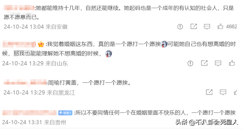 黄圣依和杨子的“离婚风波”又迎来了新篇章。![]() 在最新一期的《再见爱人4》里,节目组让嘉宾们再选一次离不离婚,黄圣依和杨子这次都选择了不离婚。 ![]() 黄圣依这次选择不离婚的原因是,她觉得今天很开心的原因是看到了杨子在自己面前表现出不知所措,甚至说是弱势的一面。 ![]() 这在以前生活中她几乎没见过,所以让她觉得杨子很可爱,很真实。 ![]() 嘉宾们对黄圣依这次选择不离婚的原因都感到难以理解,papi酱给出的评价是“简直儿戏”。 ![]() 另一位嘉宾则劝黄圣依“吃点好的吧”,觉得黄圣依仅仅因为杨子在吃饭的时候被怼了,还有杨子做一点日常生活中的小浪漫行为而从离婚转变成不离婚,这个原因显然不够说服力。 ![]() 回顾黄圣依和杨子这次的“离婚风波”,黄圣依一开始的态度是很坚决的,并且据她所说,她和杨子的婚姻问题出现的时间不短,她已经想离婚3年了,而且已经和杨子分居很长一段时间。 ![]() 而他们的婚姻里,黄圣依控诉的是,杨子对她工作上的“控制”,不管孩子,工作伙伴大于妻子等等矛盾。 ![]() 就在上一期节目上,黄圣依还坚决选择了想离婚的选项,所以这次黄圣依仅仅因为觉得杨子在自己面前被怼了,而不是一如既往“说教”的面孔就决定不离婚了,难怪评论区不但没有祝福,反而全是质疑黄圣依和杨子“炒作”的声音了。 ![]() 打开评论区,几乎都是说黄圣依和杨子这次的“离婚风波”只是剧本,怀疑他们只是在“骗流量”的声音。也有网友发出一针见血的评价,认为黄圣依能和杨子维持长达17年的婚姻,说明在这段婚姻里,他们算是一个愿打一个愿挨。 ![]() 事实上,虽然黄圣依之前表达了对杨子诸多方面的不满,但其实她和杨子刚刚在一起的时候,在黄圣依眼里,杨子是很符合她对另一半的要求的。 ![]() 黄圣依曾说很崇拜杨子,因为她希望自己的另一半是可以镇得住自己的,有主见够强大,可以在自己不用说的情况下就帮自己解决问题。 ![]() 而杨子和黄圣依的婚姻就很符合“霸道总裁”的模式,黄圣依当年陷入和周星驰公司的合约纠纷,就是杨子二话不说付了几百万帮她解决的。 ![]() 为什么说网友说的“一个愿打一个愿挨”一针见血,因为其实在黄圣依和杨子的婚姻中,从一开始就能看出杨子并没有把黄圣依放在和自己对等的位置,而黄圣依从一开始就是“卑微”的状态。 ![]() 黄圣依和杨子一开始一直是“隐婚”,直到黄圣依生下大儿子都没有公开,据传是杨子为了考虑和前妻所生的大女儿的感受,但却让黄圣依一度陷入“小三”的争议中。 ![]() 而杨子帮黄圣依解约之后,已经说得很清楚,工作上黄圣依就是得听他的,但他却不会把黄圣依的个人利益放在第一位。 ![]() 细节上,杨子可以在节目上当众说黄圣依没有文化,黄圣依居然只是笑笑不敢反驳。 ![]() 正如网友说的,杨子从一开始对黄圣依已经是“爹式管理”,而黄圣依能和杨子维持了长达17年的婚姻,如果不是“一个愿打一个愿挨”,那就是黄圣依实在太能忍了。 ![]() 而从黄圣依和杨子最新节目的表现来看,黄圣依似乎还对这段婚姻有留恋的。 |