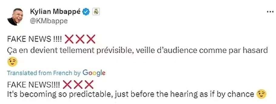 (银行酒店内部) 事情曝光之后,欧美的众多媒体进行了铺天盖地的报道。 姆巴佩也在第一时间出来反驳,疾呼: 这是假新闻!