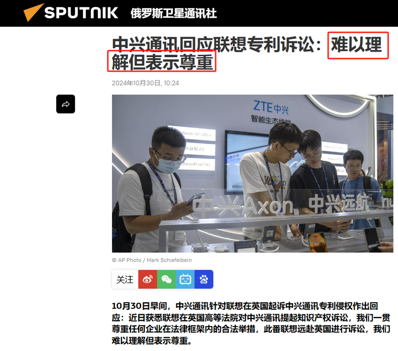 坦率地说,看到这样的新闻,第一震惊,第二遗憾,第三痛心。10月21日,联想在英国高等法院,对中兴通讯提起知识产权诉讼。10月30日,中兴通讯回应,一贯尊重任何企业在法律框架内的合法举措,但对联想此番行为感到十分遗憾。两家都是中国的知名企业,一家把另一家告到英国法院。