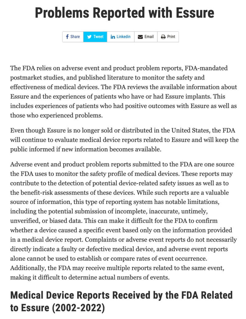 | 「安全、便捷、节育率高达 99%。不会留下任何疤痕,完全不会浪费人生。」打算节育的安娜完全相信医生推荐的 Essure:一款 20 多年前经 FDA 批准入市的永久绝育设备。 它是一种女性节育装置,可通过宫腔镜手术放置在双侧输卵管间质部,阻止精子通过输卵管,达到避孕目的。 ![]() 图源:视频网站截图 没想到,节育器 Essure 成为她的噩梦。 「我的出血无法停止…我做了子宫切除,但仍然有剧痛。我失去了工作,必须出来洗车…我没有收入,付不起房租,我担心不得不和孩子们分开。」 她原本是一名会计主管,现在却居无定所。她失去了丈夫,却仍然是四个孩子的母亲。 当她术后开始不断流血时,她咨询医生,得到的回答是「那两个小东西不会引发任何问题」。[1] 6 年前叫停销售,仍收到上万不良报告 2023 年 3 月 31 日,FDA 上线了一份题为 FDA Activities Related to Essure 的报告[2]。报告的主角是一款节育器 Essure。 在报告中,FDA 披露,2017~2022 年分别收到报告为 11854、6000、15083、16086、3701 和 1606 份;分别有 92.7%、87.5%、91%、93.5% 和 85.7% 与「装置移除」相关。 报告中,植入物最常见的问题是,患者-器械不兼容/生物相容性差(例如,可能的镍过敏或与生理排斥)、器械或器械组件的迁移、器械断裂/材料碎片/骨折、器械移位或脱位、操作与预期不符(例如,植入失败或妊娠、器械位置不良、难以移除)。 与此同时,FDA 表示「仍将继续评估与 Essure 有关的医疗器械报告」。[2] ![]() 图源:参考资料 [2] 根据 FDA 此前公布,拜尔公司早在 2018 年 12 月 31 日就叫停了在所有国家的销售。[3]只是显然,Essure 事件的余波至此仍尚未完全平息。 而 Essure 的故事,需要回溯到 23 年前。 在过去的一个世纪中,绝育总是被贴上「高并发症」的标签。医生尝试过各种方法对女性进行宫腔镜绝育,机械设备、电子装置、化学药剂......却依然没有安全有效的绝育措施。[1] 首先,实现宫腔镜下双侧输卵管置入装置绝育,必须克服 3 个技术障碍:顺利进入输卵管口,放置有效的闭塞装置,以及让装置固定不发生移位[1]。这些技术壁垒直到 21 世纪来临之际,才拨见曙光。 2001 年,拜尔公司推出的节育产品 Essure,号称可以打破这 3 个障碍的壁垒。 根据《尖端医疗的真相》纪录片(下称《尖端》)的介绍,Essure 是一项永久节育装置。医生将 Essure 插入子宫,植入输卵管内而引起输卵管的发炎、结痂,从而让输卵管因为结痂而永久闭合,阻止精子与卵子的「碰面」,就可以达到避孕的目的。 ![]() 图源:参考资料[4] 一根 Essure 仅由每个 4 厘米的小环组成,但它有着 99% 的避孕率[4]。更令人称奇的是,超高的避孕率是它最不起眼的优点:Essure 植入可以不需要麻醉,不需要任何手术切口,因而不会造成创伤,也不会在皮肤留下疤痕。 「做绝育的时间,甚至比做指甲都要短。」一位护士在观摩 Essure 手术后,立刻也做了该手术,在植入术结束后,女性甚至只需要休息 45 分钟左右便可出院,「简单便捷,永久有效。」 2001 年 12 月,Essure 获得欧盟 CE 的认证[4],2002 年,通过美国 FDA 审批。在后来的几十年里,伴随着「时间段、效果好」宣传,Essure 销售额稳步上升。 2017 年 9 月,在法国进行的 Essure 销售中,大约有 20 万名法国患者受益。[4] 可就在一年后的 2018 年,拜耳公司却通知 FDA,在 2018 年 12 月 31 日之后,Essure 永久性节育装置将不再销售。[3] 而期间据统计,在 2002~2021 年,FDA 累计收到了 67643 份医疗设备报告,报告问题包括疼痛/腹痛、子宫异常出血等。 流血、过敏、子宫切除,一步步揭穿的谎言 早在 2015 年 9 月,就有患者对 Essure 的安全问题提出质疑,FDA 召集了医疗器械咨询委员会的妇产科器械小组会议。 无数患者表示,术后迎来的并不是轻松的生活,而是一连串摆脱不掉的梦魇。 在志愿者网站上[5],人们分享自己的术后的经历,从头痛、恶心、发烧、流血不止、对装置的过敏反应,到必须行子宫切除术。有人会因为装置移动导致结肠穿孔,有人的体内甚至扫描找不到 Essure 的位置。 「我在 2013 年 10 月上午进行了手术,下午左侧开始出现剧烈疼痛,术后 3 天我都不能下地行走,但医生告诉我是正常现象。直到 3 天后疼痛加剧,并且还伴随着下体出血。我去做了超声波,结果发现 Essure 左侧的线圈根本不在输卵管,医生让我立刻去产科,产科医生告诉我必须取出线圈,治疗的最终结果是我的子宫被切除」。[5] ![]() 图源:参考资料[6] 术前,大家并没有被告知 Essure 的「代价」。而术后,这些并发症可能并不足以引起医生的重视。当受伤的女性聚集在 ACOG(美国妇产科医师学会)年度会议举办地,向参会的医生们讲解自己被 Essure 伤害的遭遇时,大多数医生不愿意相信她们的话,医生们普遍觉得:这是手术的并发症,没有一种医疗手段能完全避免并发症。 对于这些患者来说,更难的是找到体内「消失」的 Essure,并清除它。 在许多志愿者的自述中[5],Essure 并不会像宣传一样稳定的固定在输卵管内,有可能会发生移位。 不仅如此,如果医生手术失误,植入到子宫中,医生会应要求再植入一个,这样,原本分别位于两侧的 2 个装置,在有的女性体内可能会有 5~6 个,甚至 7~8 个。而这些装置,在引起腹痛和出血时,则必须通过手术去除。 Essure 官网关于手术并发症的态度也出现了自相矛盾。拜耳声明,放置的 Essure 是不可逆的,放置 Essure 后可能出现不同强度和时间的疼痛(急性或持续性);