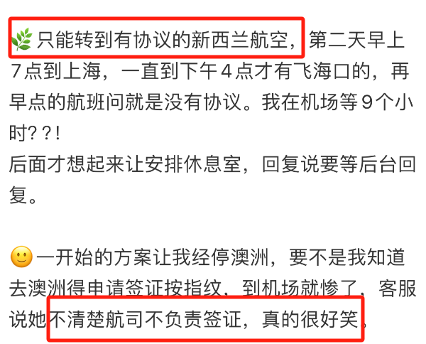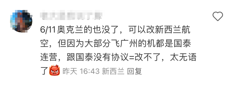 | 圣诞月马上到来,不少住在新西兰的华人朋友预订了回国的机票,也有些国内的朋友,订了票来新西兰,感受下南半球的夏天。但是最近发生的一件事情,让他们深感无语...... 01 接连收到机票暴击 最近几天,不少购买了海南航空的纽澳航线机票的网友,分享自己机票被取消了的情况。 有位网友表示,自己人在墨尔本,原本打算10号回国。 然后突然收到了回国机票取消的消息。 他找了航司去沟通,给出的解决方案是换其他时间的机票,或者是退票,但是要扣200块钱。 当时他买的往返机票价格为4500元,现在单程都要8000元了,无论怎样,乘客都是有损失的。 ![]() 其他人也陆续分享自己机票被取消的消息。 机票取消航班有奥克兰到海口的HU798航班。 ![]() ![]() 有人预订的海口到奥克兰的HU797航班也被取消。 这位网友是计划了来新西兰度蜜月,如果航班改期,后面的计划都会被打乱,很是麻烦。 ![]() 有人购买的海南航空的圣诞节期间从悉尼到海口的机票,也被取消。 ![]() 对于这样的情况,不少网友提出了疑问:“海航要关掉澳新业务吗?” ![]() “海南航空是要放弃澳洲新西兰市场了吗?” ![]() 02 航班取消原因,网友这样猜...... 关于机票取消的原因,乘客们收到的多是“航司原因”,没有更清晰的解释。 网友有不少猜测,比如“天气影响论”。 大家猜测可能是因为台风,因为“现在的台风还没走完,下一个台风就快来了”。 ![]() 而另外一个猜想,则是和经济有关系,它就是“航线转移论”。 “因为加拿大突然放开了航班限制,运力都调配到加拿大航线上割非菜去了。 “新西兰卷成这样,票价那么低,赔钱也赔不了多少,还可以给签转到纽航。 “用加拿大线赚的钱来弥补改签费用还有得赚呢。” 据海南航空官方消息,海南航空确实计划于11月10日起开通北京—多伦多直飞航线,这是海南航空继深圳—温哥华后开通的第二条直飞加拿大航线。 但是这些航线每周才飞一次,影响面感觉不会很大。所以这个理论可能不太站得住脚。 ![]() 乘客们还组建了“海航航班取消”群,互通消息。具体的航班取消理由,也只有等海航官方发出通告,才会知道了。 ![]() 03 机票被取消之后...... 取消原因先不去追究,乘客们最关心的,是机票取消后下一步咋办。 从网友分享的情况来看,当前海航并没有给出统一的解决方案。乘客们多是主动通过电话、邮件等方式联系客服,寻求下一步解决方案,这些方案,也有所不同。 直接退票 有网友是联系不少客服,最后直接办理了退票。 ![]() 改换其他航司航班 有网友最终得到的解决方案,是换其他航司的航班,从海航换到了纽航。 起初对方给她的解决方案,是从澳洲转机,而如果这样的话,她需要办理签证,客服并没有考虑这些,只是表示“不清楚航司不负责签证”。 ![]() 也有网友是从海航改到了南航。 ![]() 也有网友是得到的解决方案是“自行改签”,行程结束后“补差价”。 ![]() 根据海航网站来看,与海航在悉尼、墨尔本有联运协议的航司有:VA维珍澳洲航空、QF澳洲航空公司、FJ斐济航空、SQ新加坡航空、TG泰国国际航空。 已知的与海航在奥克兰有联运协议的航司有新西兰航空,其他尚不了解。 这里有乘客分享,“大部分奥克兰飞广州的机票都是国泰连营,因为海航与国泰没有协议,所以无法协助修改”。 ![]() 航班没了,那就退掉买新的票,是不少人会做的选择,毕竟时间已经安排好,行程还是要进行下去的。 总结下来,海航机票被取消后,有以下处理办法: 对于在海航官网购买的话,可以这样处理。 在海航官网中,他们写到对于“不正常航班后续安排”,有以下几个选择: (一)为旅客安排在第一个能够定妥座位的海航后续航班,或征得旅客及有关承运人的同意后办理签转手续。 (二)按照本条件第十一章第五条非自愿退票有关规定办理退票。 (三)按照海航有关规定协助旅客安排膳宿、地面交通等服务。 ![]() 如果是往返行程中只有一班被取消,只退单程的话,可能被退回来的钱比较少,还不如直接全退,重新买其他航司机票更划算。 除此之外,还可以联系客服,找他们改签同航司的不同入境点。 例如奥克兰飞海口被取消,可以尝试改签奥克兰到北京的航线。这个过程中可以多联系几个客服询问。 同理,如果你是从海口飞奥克兰,但是只有广州到奥克兰有机票,可以申请修改为广州-奥克兰航线,自费去广州乘坐飞机。 如果大家是在第三方平台购票,可以这样解决。 首先让第三方平台直接修改为别的航司同日的机票,因为第三方平台对接的航司多,选择性也会多一些。 当然大家也可以尝试直接申请退款,自己去购买理想日期的机票。因为海航取消,其他航司的仓位也会因此被挤占,如果有紧急事务处理,可以早些购买机票,尽量减少时间损失。 ![]() 无论怎样,都希望大家最终能够找到何时的解决方案,旅途顺利。 |