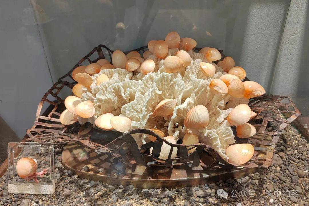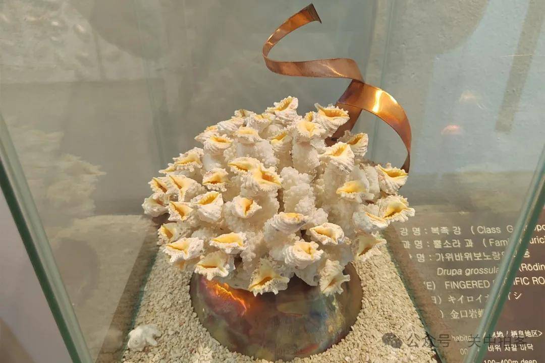 在韩国济州岛西归浦市西郊的太平路上,有一座私人建立的世界贝壳博物馆(World Seashell Museum),陈列着全球各地15000多种、数亿万个贝壳和珊瑚与铜工艺相结合的精美艺术品—— 2024年10月3日上午,游览完天地渊瀑布后,我顺着蜿蜒的盘山公路,来到上方路边的世界贝壳博物馆。 这里的外观好像一座酒店,表面装饰着巨大的贝壳,极具现代建筑的简约感。目前,门票为7000韩元(约4美元)。 走进博物馆,空间很狭小,到处都是各种贝壳,让人感觉眼花缭乱。跟一般的博物馆不一样,这里没有明确的基本陈列,看不到展览的前言、单元、说明文字等。 我不知道多少有关贝壳的知识,只能通过展品旁边的介绍牌,了解贝壳的名称和发现地点。但是,这些介绍牌大部分都是韩语或者英语,让我的参观非常吃力,感觉这里很没有意思。太无聊了!
