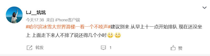 12月21日,冬至,第26届哈尔滨冰雪大世界开园第一天,因排队时间过长无法玩到想玩的大滑梯项目,现场不少游客挤在一起大喊“退票”。12月22日,华商报大风新闻记者联系哈尔滨冰雪大世界,工作人员提醒入园限流,应提前预约尽量错峰游玩。 ![]() >>>苦等四五个小时 想去廊桥楼梯间排队未果,挨冻游客齐喊退票 12月21日晚,一位排队的游客向华商报大风新闻记者解释了游客不满的原委。 “就是大家排队太冷了,想去廊桥的楼梯间去排队,保安解释说领导的意思想让前面的人都玩完再放人,这样上去就不会排太久,但后排的游客不知道前面的人为什么不去廊桥,他们都在后面挨冻就起哄。” 这位游客对园方工作人员表示理解,“排了四五个小时,这应该算正常现象吧,毕竟第一天‘爆园’,人特别多,游客抱怨会有的,安保人员从早上5点到下午2点都没有吃饭,也挺辛苦的。” 这位游客告诉华商报大风新闻记者,一些扎堆喊退票的游客闹归闹,实际上并未退票,“没有退票啊,他们起哄罢了,该玩还得玩。” ![]() >>>游客质疑管理乱 “说预约才能进,但是没预约的也混在队伍里” 另一位游客质疑哈尔滨冰雪大世界管理混乱,大滑梯预约和未预约的混在一起,导致现场排队的游客不满,“一会说预约才能进,但是没预约的也混在队伍里,预约排队又被告知不行,又需要重新排队。而且广播说,如果已经预约成功了,可以走VIP通道。我朋友问工作人员怎么走VIP通道?安保人员直接说‘谁说的,你找谁去!’” 天气预报显示,12月21日哈尔滨的气温是-18°C至-13°C,该游客吐槽道:“还好现在温度不是特别低,不然真的冻死了。” 据了解,12月21日哈尔滨冰雪大世界开园第一天,当天的门票被一抢而空,有些游客甚至凌晨3点就开始排队等待开门。 公开报道显示,2023年12月18日,第25届哈尔滨冰雪大世界开园首日,共有4万游客纷至沓来,因为排队时间长、预约难,诸多游客在现场大喊“退票”。 为此,哈尔滨冰雪大世界官方发布致歉公告称,开园首日,部分游客的游玩需求没有得到充分满足,景区对此深表歉意,会对服务不周进行深刻反思并连夜整改。 ![]() >>>带来不便园方致歉 没预约的游客可能就没玩上,退票需现场登记 12月22日上午,华商报大风新闻记者哈尔滨冰雪大世界,工作人员承认园区大滑梯游玩项目出现排队拥堵情况。 ![]() 哈尔滨冰雪大世界一张成人票328元,优惠票价是240元。工作人员表示:“大滑梯项目包含在票价范围内,正常是要先在线上预约,不预约的话,是要以现场放客标准为准。” 工作人员对游客带来不便表示歉意,“昨天(12月21日)就出现这种情况,有些没预约的游客可能就没玩上,如果退票需要现场登记。” >>>为何会排队拥堵 大滑梯容易发生冲撞,游客滑走需要间隔时间 工作人员解释称:“目前来说,哈尔滨冰雪大世界是热门的旅游景点,毕竟冰雪项目受大家的认可,特别想来玩,所以这种情况(排队拥堵)给游客带来了不便。今年大滑梯还增加了滑道,也是为了避免这个情况发生。冰雪项目存在自控的风险,大滑梯特别容易发生冲撞的情况。比如说,一位游客滑走10分钟或者8分钟,然后才是下一位游客去滑,它需要间隔时间的。” 对于游客提出在廊桥排队,工作人员回应称,“咱们本身园区的冰雪项目就是室外的,它不像在室内的会好一些。” 工作人员介绍说,“园区摩天轮项目也需要排队,它和正常的游乐场摩天轮一样,比如说4到6个人转一圈,游完才能进行下一批,摩天轮项目排队也得排3个小时左右。” >>>入园限流提个醒 提前预约尽量错峰游玩,玩滑梯别下午去排队 工作人员表示,对于游客不满齐喊退票,目前暂时还没有发布官方通报。对于园区有无合理疏导方案,目前也未接到通知。 工作人员告诉记者,“现在咱们园区已经做到每天的入园人数限流。去年也是有限流的情况,同时在园区可以最高接待4万人。今年我们的场地比去年加大了,容纳的人数会比去年多。” 工作人员建议游客提前预约,尽量错峰游玩。“我们是上午10点开园,晚上10点闭园,9点半就陆续开始清场。如果要是特别想玩,入园第一批进去的,肯定排队就快;如果是中午或者下午四五点钟去,那个时候可能上午排队的都没有消化完,再往后面排,越排时间越长。” 前情报道: 12月20日,据哈尔滨冰雪大世界消息,第二十六届哈尔滨冰雪大世界于12月21日10时正式开园,今年园区正常票价为:标准成人票价328元/张,优待票价240元/张。 ![]() 目前,在微信公众号、携程、抖音、美团等网络购票平台上,哈尔滨冰雪大世界开园首日门票均已售罄。 ![]() ![]() 凌晨3点零下22℃就有人排队 一周内的成人票已售罄 12月21日上午10点,哈尔滨冰雪大世界正式开园。据媒体报道,有游客为了能够尽早体验冰雪王国的魅力,提前数小时在园区外排队守候,甚至有人凌晨3点就抵达园区门外排队等待开园。当天,哈尔滨最低温度零下22℃。 在游客分享的视频中,媒体发现,凌晨3点园区外就迎来了第一名排队的游客,该游客称自己是山西运城人,披着棉被在园区外等候,他觉得冰雪大世界太震撼了。还有游客分享,6时许抵达园区外排队,现场已经排起长队。 ![]() 图片来源:抖音@杭州交通918 截图 ![]() 21日上午7时,九派新闻从哈尔滨文旅部门获悉,确实有人凌晨3点就开始排队,而且6时许,园区外已经排起了长队。 ![]() 图片来源:哈尔滨日报 据新闻晨报报道,开园首日,园