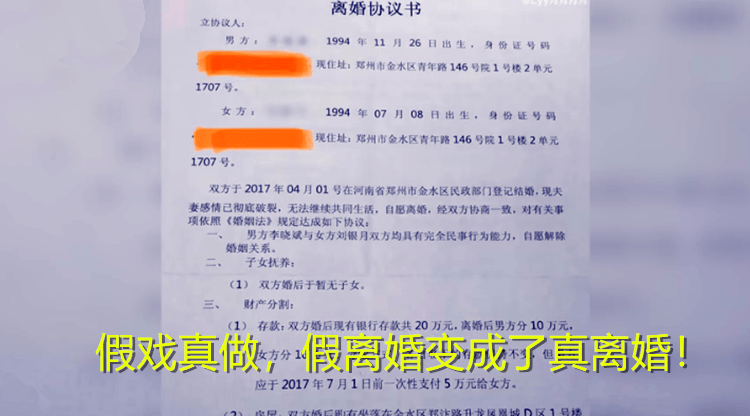 在男方的吵闹下,从“假离婚”变成了“真离婚”。