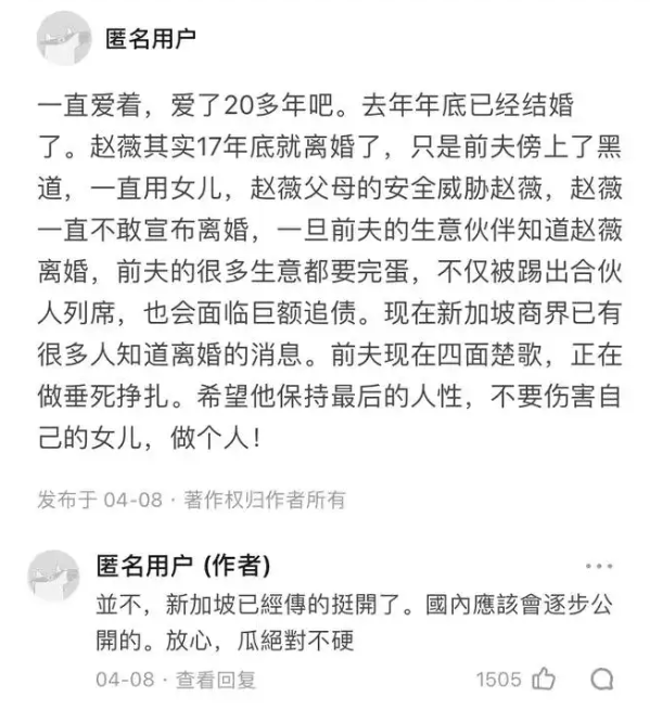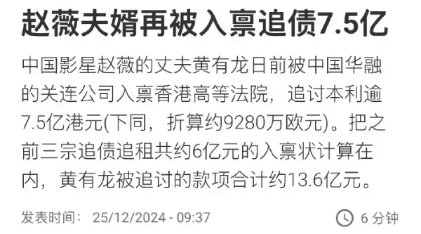 作者/圈儿 1 12月28日,赵薇猝不及防更新了一则动态,官宣多年前已正式与黄有龙离婚,两人的婚姻关系在法律上早已解除,任何关于他的事件、言论或新闻报道都与我无关,恳请各方承认这些事实,避免将我卷入虚假的关联或无根据的报道。 据了解,前几日有媒体报道黄有龙欠债7.5亿港元未还,各大媒体纷纷以“赵薇丈夫”来发布新闻,赵薇不得不站出来发声,撇清和黄有龙的关系,避免自己被波及其中吧。 不过,赵薇的文案中特别强调两人早在多年前就已分开,但在去年10月份,黄有龙的父亲去世时,追悼会的大屏幕上还特别写着孝媳赵薇的名字,很多村民都参加了追悼会,也晒出了葬礼现场的画面。![]() ![]() 既然已经离婚多年,为何赵薇的名字还在家族名单中,难道另有隐情? 赵薇离婚的消息,其实已经传很久了。 早在2020年7月就有网友发现,赵薇的社交账号里所有关于老公黄有龙的照片全部被删除,网友猜测二人早已离婚,当时赵薇工作室发文辟谣: ![]() 后来又有人爆料,如下图: ![]() 真真假假,但是看的令人毛骨悚然。 果然,资本这玩意儿,如果不是有一定定力,真不是一般人能搞的来的。 想当年,黄有龙身价好多亿,出手豪阔,疯狂追求赵薇的时候,十几万的爱马仕包包,一送就是十多个,一个钻表就是2400万。 这是哪个女人都抵挡不了的,在这样的攻势下,即便黄有龙离过婚还有个孩子,赵薇还是和他结婚了,并且很快有了女儿。 之后,关于他们恩爱的新闻就很少见了。 充斥在娱乐头条的,是赵薇和黄有龙的合伙“捞金”之路。 ![]() 2013年,赵薇靠导演《致我们终将逝去的青春》再度翻红,票房达到7.26亿。第二年,夫妻两个人就以31亿港元,入股阿里影业,成为第二大股东。之后的两年,赵薇和黄有龙靠减持阿里影业的股份,前后套现了23亿港元。 因为投资太成功,赵薇一下子成为了媒体口中的“女版巴菲特”。 可惜,最风光的时候,也是开始走下坡路的时候。 2016年底,他们试图以50倍杠杆,撬动100亿元的上市公司万家文化,严重破坏了市场规则,损坏了股民利益。 夫妻二人因此被证监会处罚,禁止5年进入证券市场。 再之后,香港名媛蔡一凤公开称黄有龙拖欠她两亿。 ![]() 也是那两年,赵薇登上“劣迹艺人”名单,作品遭下架/对赵薇进行打码处理,时至今日都没办法在视频网站观看《还珠格格》。 而这两天的香港报道是,「黄有龙又爆出被追约7.53亿的债务,加上之前的欠款,黄有龙已累计背负高达11.2亿的巨额债务」。 ![]() 看目前的情况,赵薇是要战术离婚,没跑了。 昨天,赵薇在微博上官宣离婚:“我多年前已正式与黄先生离婚,我们的婚姻关系在法律上早已解除。任何关于他的事件、言论或新闻报道都与我无关。我恳请各方承认这些事实,避免将我卷入虚假的关联或无根据的报道。” ![]() 这个声明言辞凛冽,不留余地。 和黄有龙切割的同时,又把自己撇的一干二净。 2 我一直觉得,赵薇就是被他老公给害的! 一个国民偶像小燕子,一步一步把自己搞成这样。 纵观他们这11年婚姻,几乎看不到类似寻常明星富豪夫妻恩爱日常的内容和通稿,而是充斥着金钱的味道。 比起浓情蜜意的婚姻,他们的“感情史”,更像是一部夫妻档的合作发家史。 早些年,媒体提及赵薇最多的词就是“人生赢家”四个字,新锐女导演、投资女神、金像影后等头衔令人目眩。而丈夫兼赌徒黄有龙打着生意人的旗号,空手套白狼,赵薇又成了黄有龙商业上最好的名片。 赵薇曾坦言:“我是一个对婚姻不抱期望的人,和另一半更像是拍档或伙伴。”这样的婚姻中金钱的味道超过了感情的味道,他们把婚姻经营成了一门生意,就有很大概率因为利益而翻车。 赵薇的野心有多大?她的价值观究竟是怎样的?这是很多人都在讨论的问题。然而想要了解这个些问题,我认为得从一个采访说起。 2009年,有记者采访赵薇时,曾经提到过一个概念,这个概念叫「礼貌性上床」。 ![]() 什么叫「礼貌性上床」呢? 礼貌性上床,说的就是当两个异性独处的时候,为了肯定对方的魅力,为了表示信任对方,便出于礼貌性的上个床 ——但这种上床并不是因为爱情,也不是因为喜欢,而是出于一种礼貌,就像握手一样,是一种社交需要。 当时在谈这个概念的时候,赵薇表示,这是男女平等的表现,是一种对对方的魅力的赞美。 当看到赵薇说出的这个观点的时候,我是很震惊的。 为了社交需要,便礼貌性的上个床,而这种上床还不是出于爱情,由此可见赵薇对自己有多狠。 礼貌性上床,表面看是一种观念,但是往深了看,这其实也是一种手段,更是一种为了达到目的,宁愿把身体交出去的野心。 这种为达目的不择手段的野心和价值观是好是坏我不知道,但我知道这种观念能让一个人爬到高处,也能让一个人重重摔下。 3 关于赵薇的前夫黄有龙,也是个谜。 他的资料上光明正大写的是出生于武汉,新加坡籍,但实际上他是地道湖南人,父母都在湖南生活。黄的主业是做 酒店,地产、金融、建材营销、汽车贸易及旅游、红酒业。黄曾斥资近31亿港元,成为阿里巴巴公司第二大股东。 你看当年意气风发时,是经常跟首富在一起的。 ![]() ![]() 2017年,《等深线》的记者在持续近两年的调查中发现,从日本海到南中国海,再跨过菲律宾海来到太平洋北马里亚纳群岛,黄有龙及其旗下公司与韩国济州岛、中国澳门、美国塞班等地的博彩业有着不易发现的交集。 外界一度风传