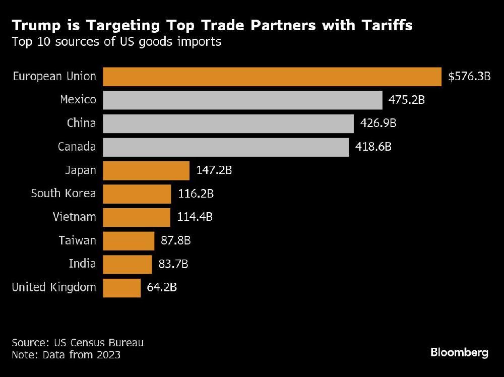 美国总统唐纳德·特朗普(Donald Trump)正在释放他的关税战争的第一个萨尔沃(Salvo),几乎无法等待预览下一个弹幕。 特朗普将于周六在他的佛罗里达州玛丽 - 拉戈(Mar-a-Lago)正式宣布对加拿大和墨西哥的一般关税,对中国的一般关税为25%,在中国宣布了10%的关税。这些国家是美国进口的最大三个来源,几乎占总数量的一半。 特朗普长期以来一直威胁到关税,尽管如果墨西哥和加拿大采取措施控制移民和非法毒品的流动,则取笑了缓刑的可能性。两者都做到了,但这还不够。特朗普本周平淡地说,他将继续前进,并说周五,各国无能为力阻止他。 特朗普对关税并不陌生,尽管他对他们的钦佩达到了新的高度。他威胁要提高加拿大,墨西哥和中国的关税。他还称赞全球全球关税,并沉迷于增加1万亿美元的年度新关税收入。 这些举动将测试这么多障碍 - 他在白宫第二学期的蜜月期限的极限;美国经济及其对通货膨胀的兴高采烈的胜利;美国消费者吞下新鲜价格的胃口;盟友的耐心。关税是由美国进口商支付的,并由消费者支付,尽管有可能抵消国外价格的降低。但是,对于特朗普来说,这是一种哲学,他渴望一个世纪前的一个时代,当时美国的库存是由关税而不是所得税资助的,他说他的措施将振兴行业。 “您将其带回国家的方式是盖墙。墙壁是关税墙,”他说。 “关税将使我们非常富有和非常强大。” ![]() 非党派国会预算办公室已将2017年减税(特朗普的最高立法优先事项)的成本在10年内为4.6万亿美元。如果从加拿大和墨西哥进口超过9000亿加元的年度进口税率超过9000亿美元,则如果关税对贸易的影响不大,则每年将在10年内筹集约2250亿美元,或者在10年内达到25%。 除非最后一刻的逆转感到惊讶,否则他说,他将以25%的税率对加拿大和墨西哥征收关税,同时将加拿大石油进口的征税减少到10%。中国的整体新关税将为10%。 反对加拿大和墨西哥的举动表明,没有任何国家可以免受重塑全球贸易的侵害。这些国家是美国商品的顶级买家,并拥有特朗普本人签署的大陆自由贸易协定。面对此,关税飞行。 他们保证了回应。加拿大承诺自己的报复性关税,甚至权衡了对石油的出口税,以削弱特朗普将汽油价格上涨从关税斗争中加下来的能力。墨西哥总统暗示她的国家可以以报复性关税做出回应,但从未提供有关可能计划的细节。加拿大和墨西哥仍在紧迫,以避免完全实施关税。特朗普问星期五他们是否可以做任何事情,说:“不,什么都没有。” 特朗普周五还表示,他将在下个月左右宣布对钢铁和铝的新关税,他在第一任期内将其征收了。他没有指定新的水平,但表示这对政府来说是有利可图的。他还说,他会对铜征收关税,没有提供细节,但说这将比钢和铝需要更长的时间。 他说,他会关税半导体芯片 - 在周五与NVIDIA Corp.首席执行官詹森·黄(Jensen Huang)会议后重复该誓言。他还保证对药物的征收关税,而没有指定哪个水平或何时生效。 首席执行官约翰·墨菲三世(John Murphy III)在一份声明中,本周早些时候发出了警报,该协会在本周早些时候发表了有关“毁灭性影响对通用和生物仿制药供应链的关税对美国患者和美国医疗保健总体上将具有的关税的警报”。 特朗普还建议星期五,他考虑到2月18日对石油和天然气的新关税,尽管目前尚不清楚他指的是什么。 特朗普第一笔关税的最终细节并不完全清楚。尽管公司和行业肯定会寻求它们,但似乎没有豁免。他说,各种关税将彼此堆叠 - 例如,一家墨西哥钢铁公司可能比那里生产不同产品的公司支付的费用更多。 ![]() 特朗普经常说,“关税”是他最喜欢的词之一,仅次于爱,宗教和上帝,并渴望一个世纪前的财政体系,那里的主要关税既是主要的收入来源,又是政治上不受欢迎的。他将20世纪初总统威廉·麦金莱(William McKinley)归功于税款的开拓者。 这场斗争是在共和党人在税收改革法案中谈判的背景下进行的,他们的目标是在没有民主投票的情况下通过一两个法案。这项努力的一个关键支柱是扩大到期的减税和制定特朗普已承诺的新税收,这两者都将扩大本已重大的预算赤字。 北达科他州的共和党参议员凯文·克莱默(Kevin Cramer)在周五的社交媒体帖子中表示关注。 他说:“美国和加拿大具有牢固的纽带,这就是为什么我有信心我们会迅速达成关税的原因。” 特朗普贸易顾问彼得·纳瓦罗(Peter Navarro)周五对CNBC表示,关税努力可以取代减税收入。 纳瓦罗说:“关税很容易为此付费。” “特朗普总统希望从所得税和无数的国税局代理商转移到世界上的关税,例如麦金莱时代,将为很多我们需要支付并降低税款的政府付费。” 在Raeedah Wahid,Maya Averbuch和Shawn Donnan的协助下 Bloomberg.com 来源链接: https://financialpost.com/news/economy/trump-launch-volley-tariff-war |