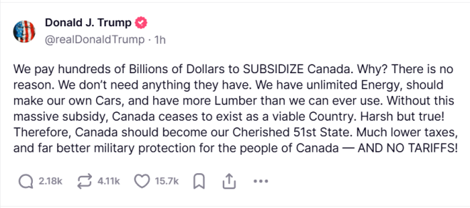 周日早晨,美国总统特朗普再次在社交媒体上猛烈抨击加拿大及其他贸易伙伴。![]() 图源:CP24 他重复了自己长期以来的说法,声称美国“每年补贴加拿大数千亿元”,但未提供具体数据或解释为何将贸易逆差视为补贴。 特朗普说,“没有这笔巨额补贴,加拿大将无法继续作为一个有生命力的国家存在。虽然听起来刺耳,但事实如此!” ![]() ![]() 他再次提及“加拿大应成为美国的第51个州”,并表示如果加拿大被美国吞并,关税争端就会消失。 此外,特朗普在早些时候的一篇帖子中,将加拿大、墨西哥和中国归为“对美国的长期掠夺者”,指责这些国家在贸易、犯罪和毒品走私方面对美国不公平。 “我们不会再是‘愚蠢的国家’了!这将是美国的黄金时代!这会带来一些痛苦吗?是的,也许会(也可能不会!)但我们一定会让美国再次伟大,这一切都值得付出代价!” ![]() 图源:CP24 安省将停售美国产酒类 安省省长福特周日宣布,从周二起,所有LCBO门店将停止销售美国产酒类。 福特表示,每年LCBO销售近10亿元的美国产品,但这种情况将不复存在。 “从今天起,安省消费者将支持加拿大本土的优质酒类产业,不再购买美国商品。” 这一举措标志着加美贸易战对日常消费者的直接影响。 周六,特朗普签署行政令,对加拿大进口商品征收25%关税,能源产品除外,但仍需缴纳10%关税。 作为回应,加拿大总理杜鲁多宣布对300亿元美国产品征收反制关税,并计划在本月晚些时候将总额提高至1,550亿元。 下周二,双方第一轮关税将正式生效。 加拿大首批拟加征25%报复性关税美国商品清单公布:多达数百种 加拿大政府公布了于周二生效的首批拟加征25%报复性关税的美国商品清单,美国产的酒、烟草、家禽、洗发水、牙膏、摩托车、枪支、家具、番茄酱、香料甚至巧克力的价格即将上涨。这份涵盖数百种商品类别的清单是加拿大将在未来几周对总价值超过1500亿元的美国商品征收两轮关税中的第一轮。 ![]() 图源:britannica 在一份新闻稿中,联邦政府还宣布了一项减免程序,该程序将允许加拿大企业“申请特殊减免关税,以回应美国对加拿大征收不合理关税的行为”。 第一波针对价值300亿元的美国产商品征收25%的报复性关税将于2月4日星期二开始实施,同一天美国还将对所有加拿大和墨西哥商品征收25%的关税。 从周二开始,以下从美国进口的商品价格将上涨25%,包括: 活家禽,如鸡、鸭、鹅、火鸡和珍珠鸡及其肉。 大多数牛奶、奶油、酸奶、奶酪和其他乳制品。 各种各样的水果和蔬菜,如:西红柿、豆类、柑橘类水果(橙子、橘子、柠檬)、甜瓜、桃子和杏子。 咖啡和茶。 许多香料和种子,包括生姜、百里香、月桂叶、肉豆蔻、肉桂、丁香和香草。 黑麦、小麦、大麦、燕麦和大米等谷物。 瓶装水,包括矿泉水和调味水。 几乎所有酒类,包括威士忌、啤酒、葡萄酒和其他烈酒。 化妆品和盥洗用品,如洗发水、牙膏、除臭剂、剃须膏和肥皂。 摩托车和踏板车。 枪支和弹药。 家居和办公家具 香烟、雪茄、电子香烟、尼古丁袋和其他类似产品。 政府在新闻稿中表示,只要美国对加拿大的最新关税仍然有效,这些关税就会一直存在。 加拿大财政部在一份新闻稿中表示:“正如昨天宣布的那样,政府还打算对另一份价值1250亿元的美国进口产品征收关税。第二份清单将在未来几天公布,并在实施前进行为期21天的公众评论。” “其中包括乘用车、卡车和公共汽车、钢铁和铝产品、某些水果和蔬菜、航空航天产品、牛肉、猪肉、乳制品等产品。” 关税实施后加拿大哪些商品会立刻涨价?食品饮料摩托车化妆品…… 加拿大总理杜鲁多宣布对美国商品征收一系列进口关税,以报复美国总统唐纳德·特朗普当天早些时候下令征收的全面关税。 杜鲁多表示,价值数十亿元的美国进口商品将被征收关税,从周二的300亿元商品开始,到2月底总额将上升至1550亿元。 在周六深夜讲话中,他呼吁加拿大公民在购物时“选择加拿大”。 ![]() 图源:51记者拍摄 特朗普周六宣布的命令包括对加拿大进口商品征收25%的关税,但能源除外,能源将征收10%的关税,所有命令预计于周二生效。 联邦财政部长Dominic LeBlanc在周日上午的一份新闻稿中写道:“美国的这些关税显然是不合理的。我们唯一的重点是尽快取消这些关税。在此之前,我们的回应将是平衡而坚决的。” ![]() 图源:CP24 以下是联邦政府表示预计价格上涨的一些项目:饮食杜鲁多表示,美国进口的水果蔬菜和果汁等农产品将受到即将出台的进口关税的约束。此外,啤酒、葡萄酒和波本威士忌等酒精饮料也将征税。 杜鲁多说:“这可能意味着选择加拿大黑麦威士忌而不是肯塔基波本威士忌,或者完全放弃佛罗里达橙汁。” 财政部周日早间发布的新闻稿指出,受到首轮进口关税影响的食品杂货包括花生酱、橙汁、咖啡和不仅限于波旁威士忌的烈酒。 此外,第二轮加征关税可能影响牛肉、猪肉和奶制品以及一些水果和蔬菜。 财政部新闻稿称,第二轮加征关税产品的完整清单将很快公布,并进行为期21天的公众咨询。 时尚和奢侈品杜鲁多总理列出的预计受即将征收关税影响的产品还包括香水、服装和鞋子。财政部周日发布的公告将这份清单扩大到将化妆品纳入首轮关税范围。 ![]() 图源:51记者拍摄 家居用品杜鲁多提到,家用电器、家具和运动器材都符合征收关税的条件