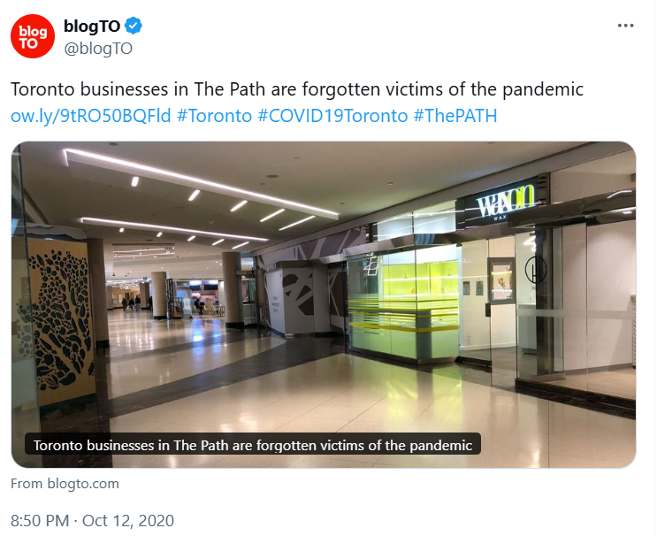 图源:X 疫情期间,PATH地下商铺大规模关闭,人流量大幅减少,这对美食广场的运营造成了沉重打击。此外,另一家位于Sherway Gardens商场的Saks美食广场,也在2023年初关闭。