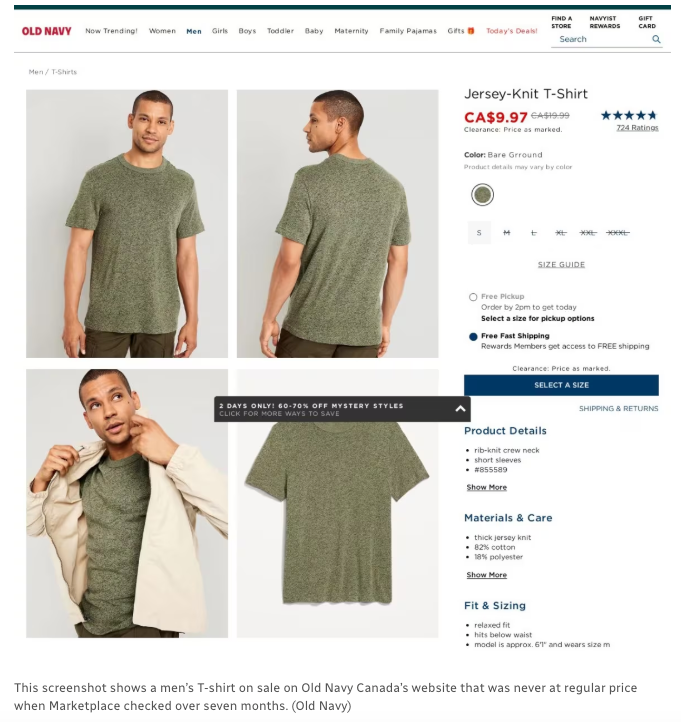 Old Navy 和 Gap Canada 面临集体诉讼 Old Navy Canada 和 Gap Canada Inc. 目前正面临一场集体诉讼,指控其虚假宣传原价。2024 年 11 月,加拿大不列颠哥伦比亚省最高法院受理诉讼,尚未正式认证。 该诉讼指控Old Navy 和 Gap “始终” 或 “几乎始终” 以所谓的“折扣”出售商品,而原价并非真实的市场价格。 类似的诉讼 2022 年在美国加州旧金山已有先例。加州法院判决 Old Navy 因误导性“参考价格”(strike-through price)支付 3.4 亿美元和解金。 Gap Inc.(Old Navy 母公司)拒绝接受 CBC《Marketplace》的采访请求,也未对调查结果作出评论。 加拿大《竞争法》(Competition Act)禁止误导性营销,包括虚假折扣 和 伪造限时促销。但专家表示,加拿大竞争局缺乏足够的资源来执行这些法规。 2023-2024财年,竞争局收到 3,427 份欺骗性营销投诉,其中部分涉及伪造紧急促销。但只有 5 起新案件被立案调查,10 起案件被终止,39 起仍在调查中。 根据竞争局的处罚标准,企业首次违规,最高罚款 1,000 万加元(再犯可达 1,500 万加元)。或按照欺骗性销售所得的3倍进行处罚,若无法计算,则按照公司全球年度营业额的3%计算罚款。 但由于竞争局人手有限,专家认为消费者仍需依靠自己提高警惕。 如何避免被“假折扣”欺骗? 专家给出了如下建议: 不要急着购买,许多商品会多次打折,不必冲动消费。 2. 长期观察价格,如果你计划购买某件商品,可以记录价格走势,找到真正的最低价。 3. 别被“折扣金额”误导,重点关注 当前价格是否值得购买,而不是“省了多少钱”。 在欧盟(EU),商家必须同时展示过去 30 天的最低价,让消费者能清楚对比折扣力度。专家认为,加拿大应效仿这种做法,确保消费者获得真正的透明信息。 Advertisements |