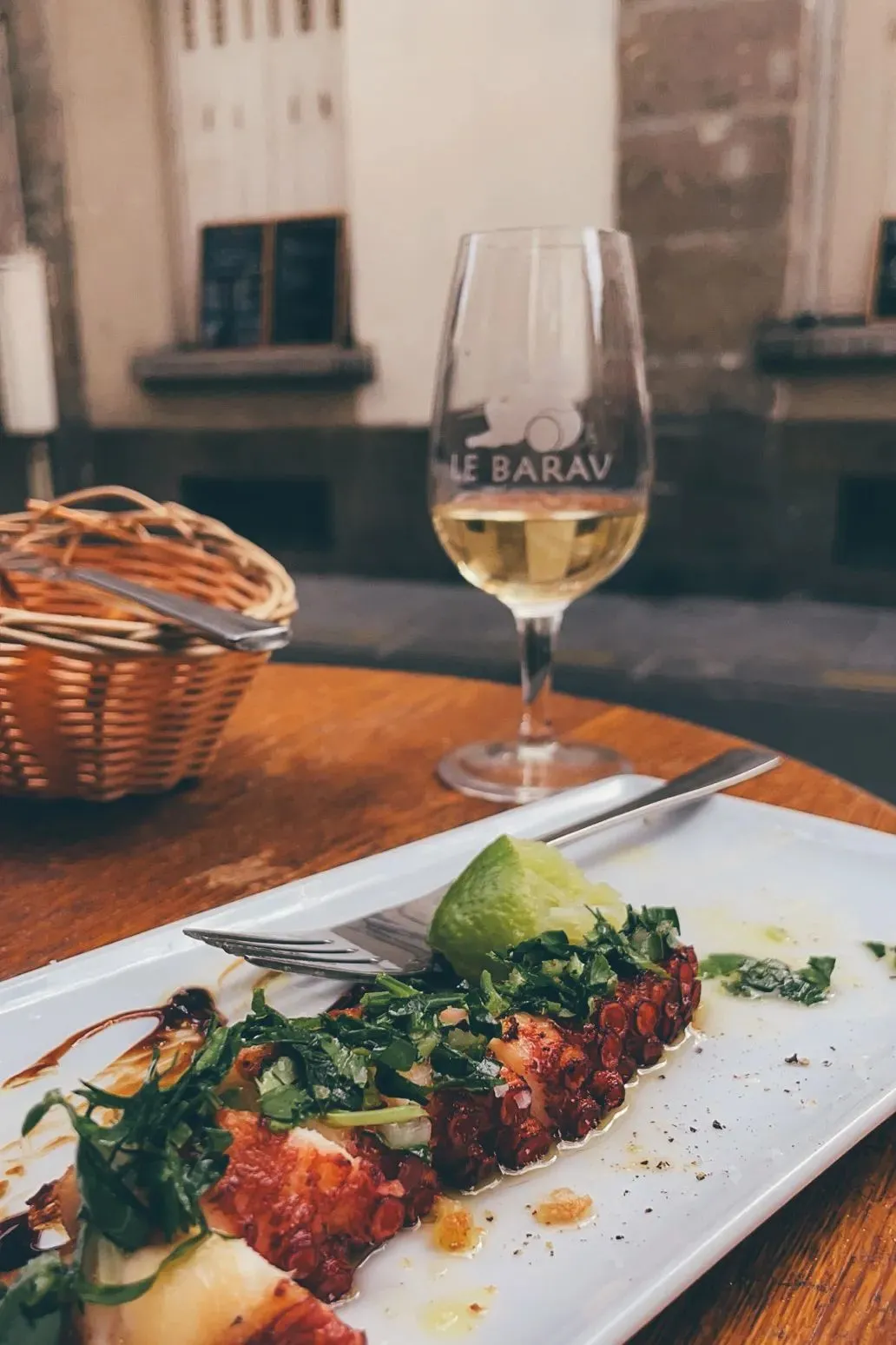 经历了可以说是轰轰烈烈的奥运会之后,巴黎,仿佛是从一场盛大的派对狂欢中醒来,缓慢地睁开了惺忪的睡眼,依旧不变的,还是那份独属于法国人的松弛感。 穿梭在这座城市里,一些“新”与“旧”的碰撞和对话悄然展开,新的场馆、新的交通、新的巴黎圣母院的尖顶,但总归,最后一切也都将融入巴黎这场永不落幕的盛宴,继续见证着这座城市中,每一个环岛里的兜兜转转,每一次塞纳河水的潮起潮落,还有每一个在细雨中夹着法棍步履匆匆的人。 天气好的时候,街边的咖啡馆依旧热闹拥挤,杜乐丽花园的喷泉边上依旧围着圈“抢椅子”、晒太阳。 夜幕降临时,酒馆里依旧人头攒动,不论本地人还是游客,酒馆文化似乎是体验这座城最直接和有趣的一环。这时候随便推开一扇门,任凭自己沉浸在轻松可爱的酒馆氛围里。酒过三巡尽兴时,萧瑟的冷风也挡不住前往一家面馆、寻一碗“解酒汤”的劲头,这或许也是一个中国胃打开巴黎酒馆的正确方式。 01 DELICATESSEN LA PLACE 7 RUE JEAN-PIERRE TIMBAUD, 75011. PARIS Delicatessen 酒窖可能很多人不陌生,这里是乐趣无穷的淘酒宝地,每次来都不会空手而归,而且,恨不得再多长出一双手才更好。 巴黎蒙马特 推门而入好像走进了一间葡萄酒图书馆,每个货架都被可爱的瓶子们挤得满满当当的。香槟、红、白、橙酒四足鼎立,还有一个货架专门放置双倍装的大酒瓶。琳琅满目的酒标让人目不暇接,很容易犯了“选择困难症”的难。所有这些瓶子里装的,几乎都是店主精心从各个产区搜罗来的遵从自然风土、低干预的葡萄酒。 一个傍晚去买酒,发现门口站了不少人都端着酒杯,本以为是品鉴会,结果顺藤摸瓜,推开酒窖旁边的门,才恍然发现,竟然是酒窖的另一个空间——La Place小酒馆。 这个小酒馆的店面,曾经是一间修鞋铺子,在被改造成酒馆之后,店家竟还念旧地保留了门口“鞋匠”的灯箱。每天下午 5 点开始营业,也就 5 张桌子,所以几乎瞬间就会坐满客人,但不妨碍其他的酒客们,端着酒杯在店门口的路边小酌。当然,时不时地,人们也会蹿回旁边 Delicatessen 酒窖里,边小酌边和侍酒师聊聊天,没一会儿工夫,手上就多出一瓶酒拿去前台结账了。 这样“前店后场”的设置,想喝的酒,在酒窖结账后,出门左转就能开瓶立马喝上,如果需要下酒小菜,黑板上的几道经典酒馆小食、一份面包,就已经能让人很快乐。即刻满足、轻松微醺,正是眼下人们迫切需求的解压方式,也难怪这里总是门庭若市。 两杯清爽提神的干白葡萄酒下肚,卢瓦尔河的 melon bourgogne 和 folle blanche 两个品种混酿,带来的咸鲜感引得人食欲大开,微醺的傍晚刚过,夜色渐浓时,踏上轻快的步伐,干脆一路来到了歌剧院大街。此时,脑海中“孤独的美食家五郎”的 BGM 响起,“噔-噔-噔”,只为找到一间锅气十足的面馆。 02 SANJO 29 RUE D'ARGENTEUIL, 75001 PARIS 进入冬天,即便是抗冻的法国人也开始明显聚集在 pyramide 日本街附近,寻觅热腾腾的拉面。Sanjo,外观看着更像一间法式 bistrot,透着起雾的落地玻璃,隐约看见一点内部:已经满座的小店里,硕大的球形吊灯发着温暖的黄光、吧台里穿着白色制服的拉面匠严肃而有条不紊,嗯,就是它了! 落座拿到菜单,拉面有四种:鸡汤、柚子盐、担担面和松露拉面。鸡汤拉面,底部是鸡骨与猪骨熬制的浓汤,汤底上还淋了厚厚一层背脂,闪着黄澄澄的油光,冬天里人们对脂肪的热切需要,这一碗刚好满足。相比汤和面,叉烧的滋味更惊喜,卤入味的同时,猪肉片薄厚适中、柔软多汁,越嚼越香,而且毫不肥腻。 刚咽下去最后一口汤,邻桌点的面也上来了,是担担面和柚子盐拉面,两碗看着都很有食欲。思前想后,一碗清新爽口的柚子盐拉面连打,醉意全消,带着暖意心满意足地回家。 03 COINSTOT VINO 26 B PASSAGE DES PANORAMAS, 75002 PARIS 藏在 Passage Panoramas 里的鼻祖级自然酒馆。Grands Boulevards 一带多是剧院、影院,每每赶上演出,总能遇见大排长队的景象。但如果只是不经意地逛到此处,不妨钻进这间 Panoramas 长廊里,穿过各种小工作室画坊、邮票和旧货店铺,拐角处便是 Coinstot Vino。首先映入眼帘的是,黑灰色简陋的门面、不拘小节的粗糙木桌椅,还有遍地摆着的空酒瓶。可营业时间一到,店内和外摆都能鬼使神差地迅速坐满了人。 这里应该是从十多年前开始,头一批不设置酒单、由侍酒师推荐自然酒的馆子。到现在也依旧如此,只要把偏好告诉侍酒师,他便会干脆利落又带着笃定地从酒柜里拎出一瓶酒来,从阿尔萨斯到汝拉,再从意大利的艾米利亚-罗马涅到西西里岛,就这么跟着侍酒师的天马行空,随心所欲地在葡萄酒的乐园里玩起来!可以点些简单的下酒菜如火腿奶酪拼盘,也有 pizza 可以饱腹。 这是一间不需要让人“思考”的酒馆,不用纠结于点什么酒、吃什么菜,无比轻松的气氛可以感染到每一个来客,那就干脆“放飞自我”,尽兴而归。 披萨、冷切拼盘虽好,和朋友分享一瓶来自阿尔萨斯 Brand&Fils 自然派雷司令之后,清冽的酸度和浸皮带来的芳香和扎实感,还是让胃口难以抑制地“呼唤”一碗热腾腾的碳水。“噔-噔-噔”BGM 再次响起,迅速穿过 Saint-Augustin 街再拐两道弯,来到了杜乐丽花园附近的一家荞麦面屋。 04 ECHIZEN SOBA TOGO 33 RUE SAINT-ROCH, 75001 PARIS 1 区的纵横小路里,藏着不知道多少或大牌或小众的奢侈品店,有些格格不入的则是这家荞麦面店。有些远离 pyramide 日本街区,这家门头干