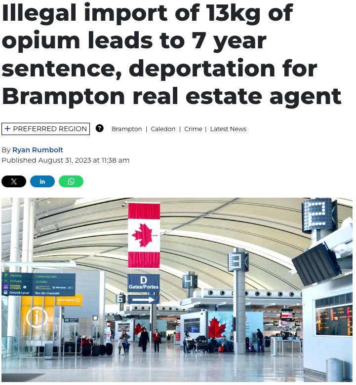 法庭获悉,维尔马于 2022 年在印度结婚,当时他已经被捕,但还没有定罪;他的妻子是一名大学教授,目前留在印度,他计划担保她来加拿大与他团聚。 2019 年 8 月 3 日,在他返回多伦多之前不久,加拿大的一位家庭朋友问他是否可以带一些糖果回加拿大给他。 这位朋友和他关系非常密切,维尔马称他为叔叔。 维尔马说他可以,并在德里机场会见了他“叔叔”的亲戚,在那里,维尔马收到了几盒糖果和其他礼物。 2019 年 8 月 4 日,当维尔马降落在皮尔逊机场时,加拿大边境服务局的官员CBSA看了看他的两个大行李箱、一个随身行李包和一个挎包,觉得对于一次短途旅行来说,这些东西太多了。 于是,他被送去接受二次检查,官员们说他没有其他可疑迹象。 当被问及箱子里的盒子时,他说它们是“印度糖果”。 当一名边境官员切开一个盒子,惊讶地说“那些不是糖果”。打开盒子后,里面有一种用塑料包裹的黑色焦油状物质。 根据法庭文件,维尔马在海关检查时说:“他们告诉我那是糖果。” 当被问及是谁告诉他时,他说是他叔叔说的,并给了警方他的电话号码,要求警方给他打电话,但无人接听。 维尔马说,他不知道盒子里除了糖果外还有别的东西。 但是,除了盒子外,边境官员还发现了两小袋鸦片,一个在衬衫口袋里,一个在腰包里。 经过化验,这证实是鸦片,重近 14 公斤,价值从 294,316 元到 936,460 元不等,具体取决于是批发还是零售。 于是,维尔马被捕。 2023 年,案件进行审理,他的行李中确实有毒品,这一点毫无争议;陪审团的问题是他是否知道自己在做什么,还是被骗了? 一名皇家骑警作证说,当维尔马被问及毒品时,被告说他很害怕,如果那家伙发现了他会死。 皇家骑警还说,他们问过维尔马鸦片袋的事,他说它们也是来自同一个人。 检察官指出,这相当于认罪,因为这暗示他看到过这鸦片袋,袋子是透明的,显然里面没有糖果。 在法庭上,他坚称自己被骗将鸦片伪装成糖果和礼物放在行李中。他说,发现鸦片袋的衬衫和腰包是他带回家的礼物之一。他说,皇家骑警没有问他鸦片袋的事。 没有证据表明维尔马与犯罪或毒品分销组织有任何联系,他也没有犯罪前科。 但陪审团不相信维尔马。