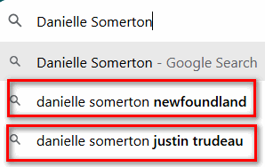 目前google的搜索已经显示两人的名字以及杜鲁多新女友纽芬兰的字样: