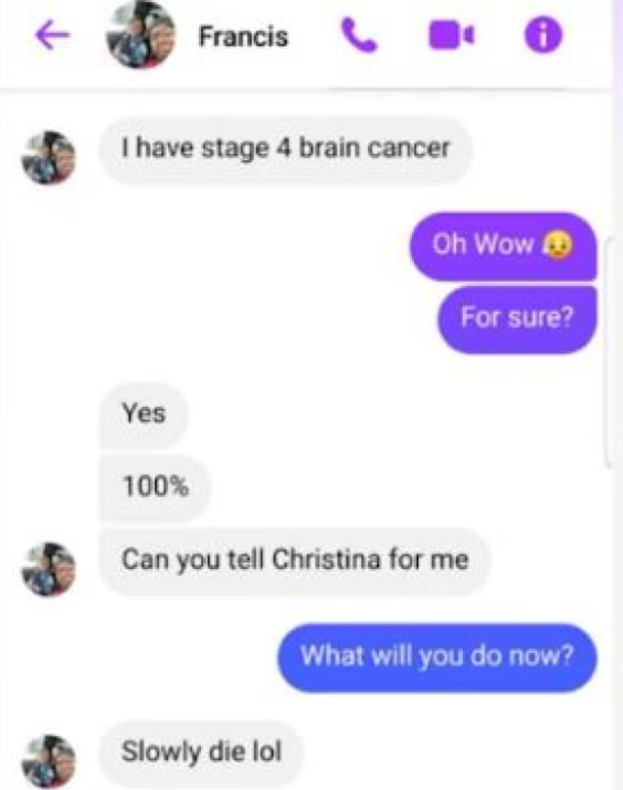 因为在两人两个月的短暂交往中,Christina从自己的信用额度中借了很多钱给Francis,允许他使用自己的信用卡,并最终将他添加为辅助卡持有人。 “我不得不提高限额,因为他的消费已经把信用卡刷爆了,我还用房子再融资,以帮助Francis偿还高息债务,并维持他的生意。” 在经过很长时间的否认和心碎,Christina才认清了现实,这个男人就是为了骗她的钱,而她足足损失了近30万!