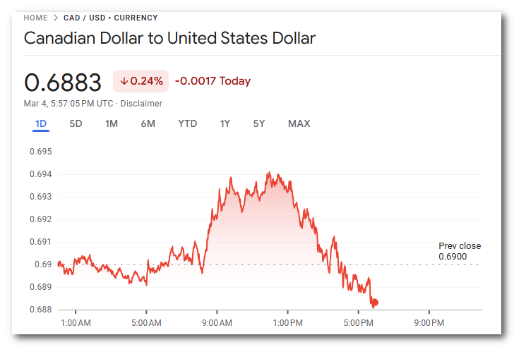 政府将为工人和企业提供支持他用法语表示,加拿大在过去一周做出了更多努力,加强与墨西哥的合作,墨西哥也受到关税的严重打击。总理补充说,他看到加拿大人团结起来,取消旅行计划,并支持当地企业。他直接对加拿大人发表讲话,重申了之前捍卫就业、保护加拿大公司和工人的承诺。杜鲁多承诺为陷入加美贸易战的工人和企业提供支持。预计关税将导致失业。他表示:“对我的加拿大同胞们,我不会粉饰事实:这将是艰难的。”关于即将提供的援助,目前还未透露具体细节。但他补充说,正在考虑调整EI(就业保险),以帮助加拿大人度过这段时间。当被问及是否考虑对出口到美国的石油、天然气和钾肥征税时,杜鲁多谈到了国家团结,他说,加拿大的任何一个地区都不应该承担比其他地区更重的负担。他说:“现在最重要的事情——比任何事情都重要——是加拿大人保持团结。现在是我们齐心协力的时候了。”包括阿尔伯塔省长丹尼尔·史密斯在内的各省省长都表示反对对石油和天然气征收出口税。杜鲁多和各省省长定于今天下午举行会晤。当被问及他在非关税措施方面有何打算时,杜鲁多表示今天下午将与各省省长坐下来讨论他们各自和集体的应对措施。“我们一直在考虑许多不同的事情,今天下午与省长们的谈话将非常非常重要。”加元暴跌周二,加元兑美元汇率跌至0.6884美元。