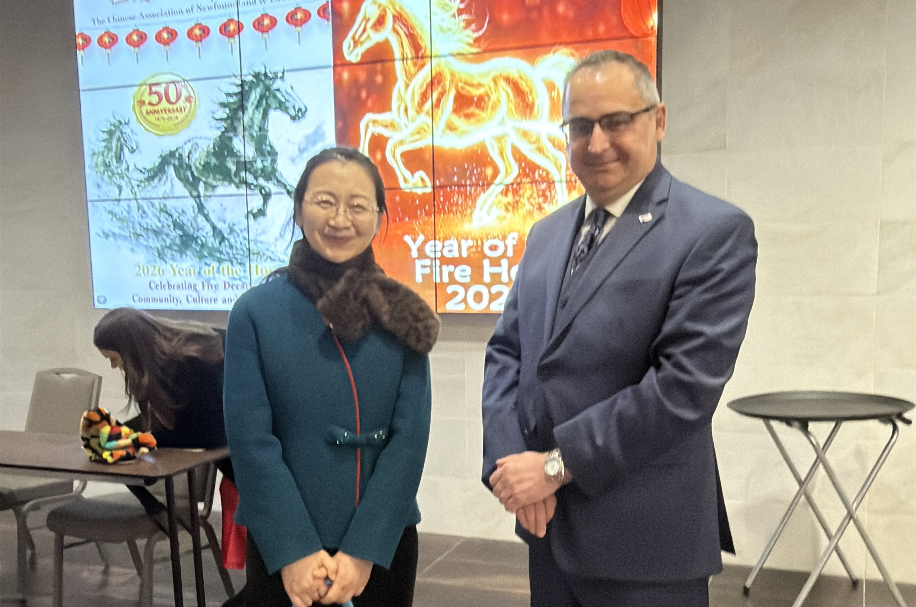 2月19至21日,驻加拿大使馆首席馆员林镔公参率工作组访问纽芬兰和拉布拉多省,开展“温暖迎春·共庆中国年”慰侨专项活动。工作组参加当地主要侨团纽芬兰华协会举办的新春晚会暨华协会成立50周年庆典,与侨学界、中国留学生座谈,向广大华侨华人致以诚挚的新春问候和节日祝福,并赠送了 “新春暖心包”。