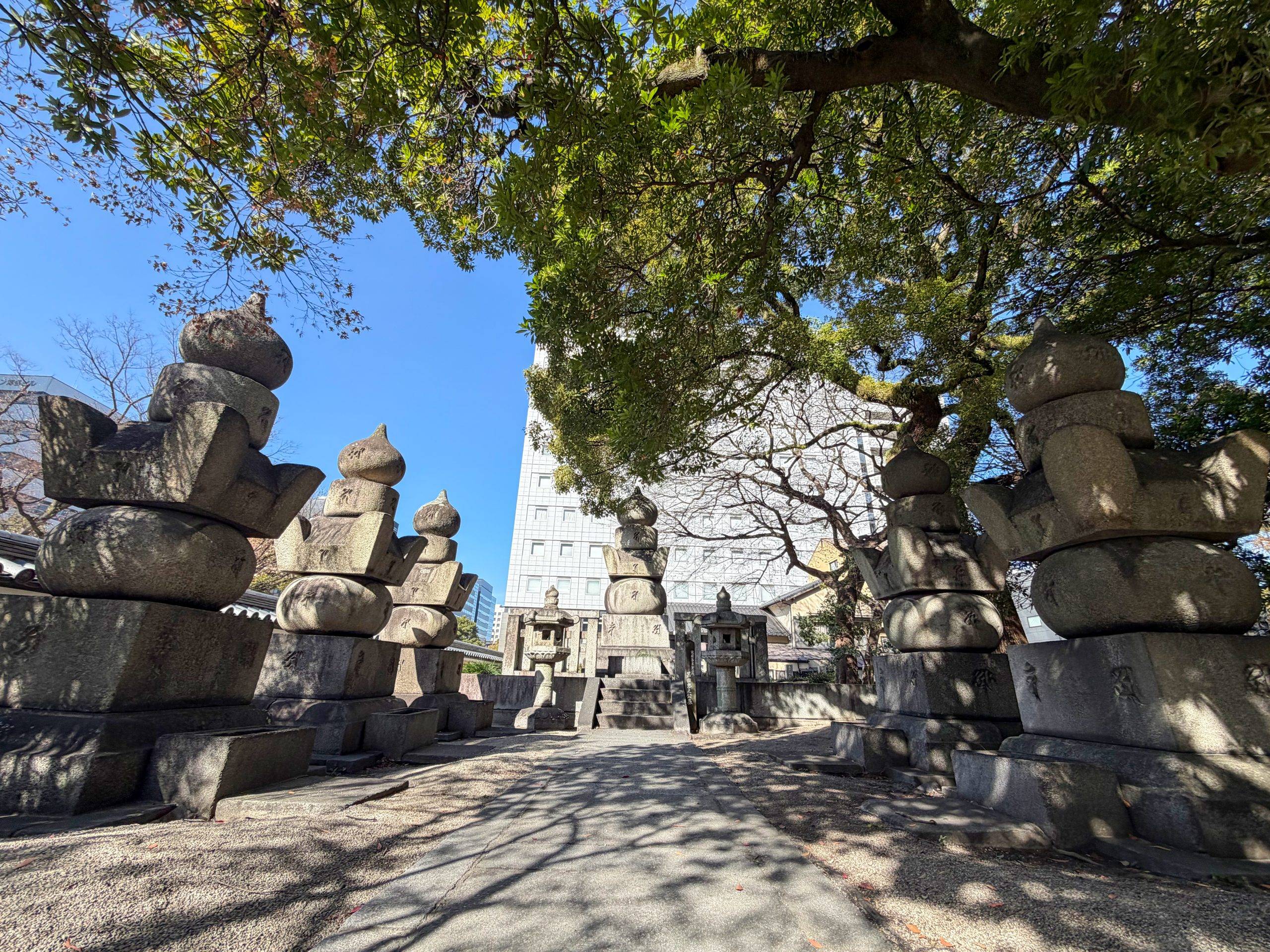 然而,这次造访真正牵动我心的,是寺院后方的黑田家墓所。福冈藩主黑田长政及其后继藩主的墓地静静安置于寺域一角。黑田氏是筑前福冈藩的统治者,自江户初期入封此地后,奠定了福冈城下町的格局。其实,博多与福冈原本是两个不同的城市单位,但在黑田家治下,武家町与商人町并存,城市结构由此定型。今日福冈市的雏形,其实就埋在这些墓石的时代之中。 墓所并非宏大陵园,而是典型的武家墓地格局:石塔整齐排列,松影低垂,空气中带着草木与石材混合的气味。没有喧闹的解说声,只有风声掠过塔身的轻响。站在这些墓前,日本江户时代的时间仿佛并未远去——城郭政治、参勤交代、藩政运作,都曾以这里为精神坐标。 黑田家在九州历史中可以说相当地有分量。长政之父黑田如水(官兵卫)以智略闻名于战国末期,而长政本人则作为德川政权的有力大名,参与奠定近世秩序。福冈藩在江户时代是重要外样大名藩之一,既有军事义务,也需维持财政与治安。城下町的寺院,正是这种政治——社会结构的组成部分。藩主家墓所设于此,并非偶然,而是武家与宗教空间相互依托的历史结果。 需要赘述的是,那个年代黑田藩的一个农民一锄落地,竟然挖出了一颗金印,那上面的文字印证了中国典籍《后汉书》上有关东汉汉光武帝赏赐给日本倭王金印的事情,从而凿实了中日两国二千年交流史开端的起点。这颗金印,现在存放在福冈历史博物馆。 我在墓地石阶旁坐了一会儿。阳光从松针间落下,像碎金一样铺在墓塔上。这里没有观光式的“震撼感”,却有一种缓慢渗透的重量。所谓历史感,不在于轰动的事件,而在于这种持续数百年的秩序与记忆。藩主、家臣、町人、僧侣——各自角色不同,却共同维系着一座城市的运作系统。