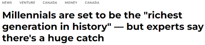 一份新报告称,许多千禧一代可能在未来20年拥有良好的财务状况,并声称这一代人将成为历史上最富有的一代。 ![]() ![]() 然而,这些财富要归功于长辈传给他们的资产。 全球房地产咨询集团莱坊(Knight Frank)本周早些时候发布了第18版财富报告。这份76页文件的最大收获之一是,千禧一代(1981年至2000年出生的人)将在未来几年内经历“地震式”的财富转移。 报告中写道:“未来20年,随着婴儿潮一代将权力和财富移交给年轻一代,财富和资产将会转移。” 但是向千禧一代转移财富有一个问题。 在后续分析中,莱坊研究部全球主管Liam Bailey强调,仅在美国这种财富转移将导致有90万亿美元的资产在代际间转移。 然而,并非所有千禧一代都会分得一杯羹,Bailey强调,那些已经“富裕”的人将成为“历史上最富有的一代”的一部分。 这种大规模的财富转移也有一个巨大的问题,因为它将加剧全球的财富不平等。 报告指出:“存在着巨大的二分法:世界上71%的人生活在一个不平等日益加剧的国家。” 最近的一份报告也强调了财富不平等对环境的影响,该报告发现,最富有的1%人口与占世界最贫困人口66%的50亿人造成的碳污染量相同。 年轻一代的投资方式会有所不同。 Bailey补充道,千禧一代的投资方式也将与他们的前几代人大不相同。 尽管已经富裕的千禧一代在财务未来方面似乎处于有利地位,但该报告指出,根据该公司进行的一项调查结果,富裕的Z世代(1990年代中后期到2010年代初期出生)对自己创造财富的能力最有信心。 调查结果发现,75%的Z世代受访者预计自己的财富在明年会增加。 “Z世代尤其正在寻找符合其价值观的投资方式。” 与他们的父母或祖父母不同,Bailey认为年轻一代不会将购买住宅视为创造财富的路线图。 “特别是过去15年的低利率环境和房价的惊人增长在未来15年不太可能重演,”他表示。 Bailey补充道,Z世代可能对采用长期租赁的生活方式更感兴趣,这促使他们租赁房产或租赁汽车等资产。 来源链接: