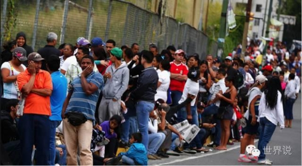 委内瑞拉民众急囤物资 加油车队看不见尽头