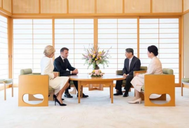 马克龙对日本皇后行吻手礼 爱妻穿紧身裙高