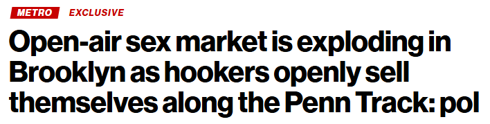 据纽约邮报11月3日报道 东纽约(East New York)的露天色情市场如今臭名昭著,衣着暴露的性工作者在Pennsylvania Avenue附近地区激增,家长们不得不遮住孩子的眼睛。与此同时, ...
