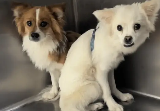 有位经常救助流浪动物的好心小哥,这天这位小哥又接到了一位大姐的求助信息。大姐告知小哥,大半夜的,在当地的一个公园里,有两只小狗连带它们全部的家当一起被抛弃了。由于当地已经开始下雪,这两只小狗只能蜷缩在滑梯底下,互相依偎着取暖,看起来特别的可怜。但因为大姐自己实在没地方饲养它们,无奈之下,大姐只能联系上小哥,并希望小哥能够帮忙将它们带走。