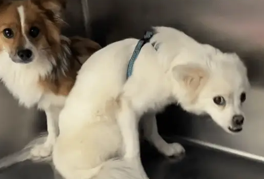 两只小狗都异常胆小