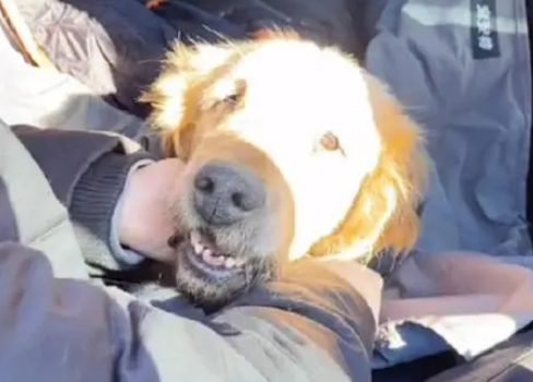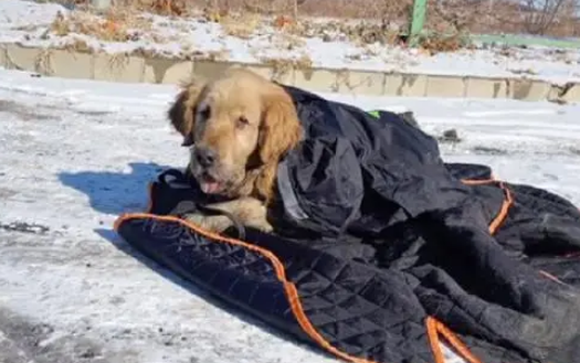 十岁金毛惨遭抛弃,孤独地躺在雪地上