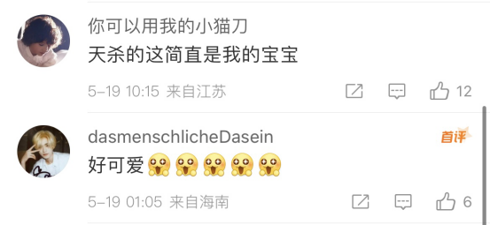 还有很多网友进行了评论,比如@你可以用我的小猫刀:“天杀的这简直是我的宝宝”;还有@dasmenschlicheDasein:“好可爱”。