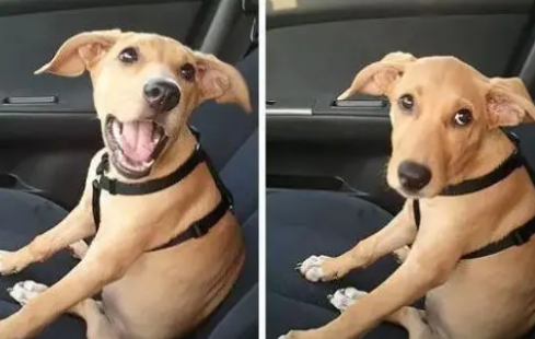 而这位铲屎官则是一开始对狗说带它出去玩,这时候狗狗都非常开心,坐在车上乐呵呵的,结果主人开到医院的时候,跟狗子说要去打针,结果狗子一下子大好心情全无,简直就是“光速变脸”。