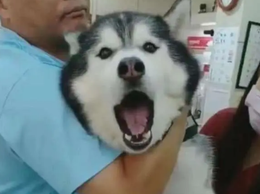 这只哈士奇则更加有趣了,医生只是摸了摸它的前爪,结果立马就开始瞎叫唤,似乎在高喊:救命啊,有人要宰狗了。还好还有一位医生紧紧抱着它,否则这只哈士奇非得闹翻天。