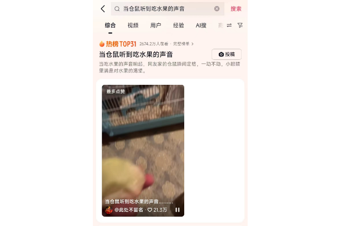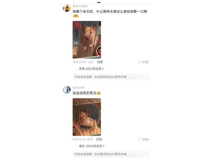 视频中,随着家中吃水果的细微声响轻轻响起,这只可爱的小仓鼠仿佛被施了魔法一般,瞬间定格在原地,两只圆溜溜的眼睛里满是对美味水果的渴望与期待。这一幕温馨而又逗趣,迅速吸引了大量网友的围观和点赞。